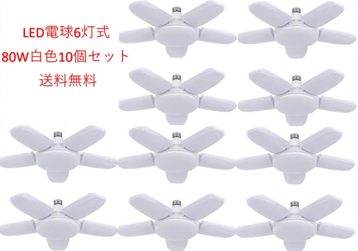 LED ガレージライト シーリングライト 蛍光灯 80W 6灯式 E26 E27 電球 昼白色 6500K 照明器具 天井照明 ペンダントライト10個セット