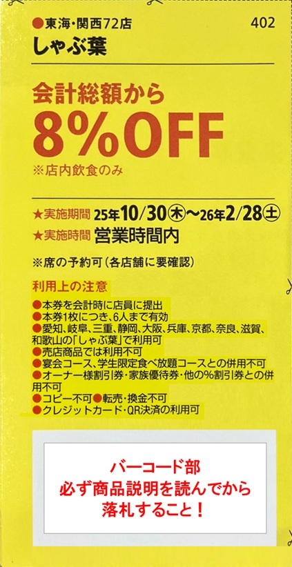 本クーポンはバーコードの読み取りによって割引が適用となるため、