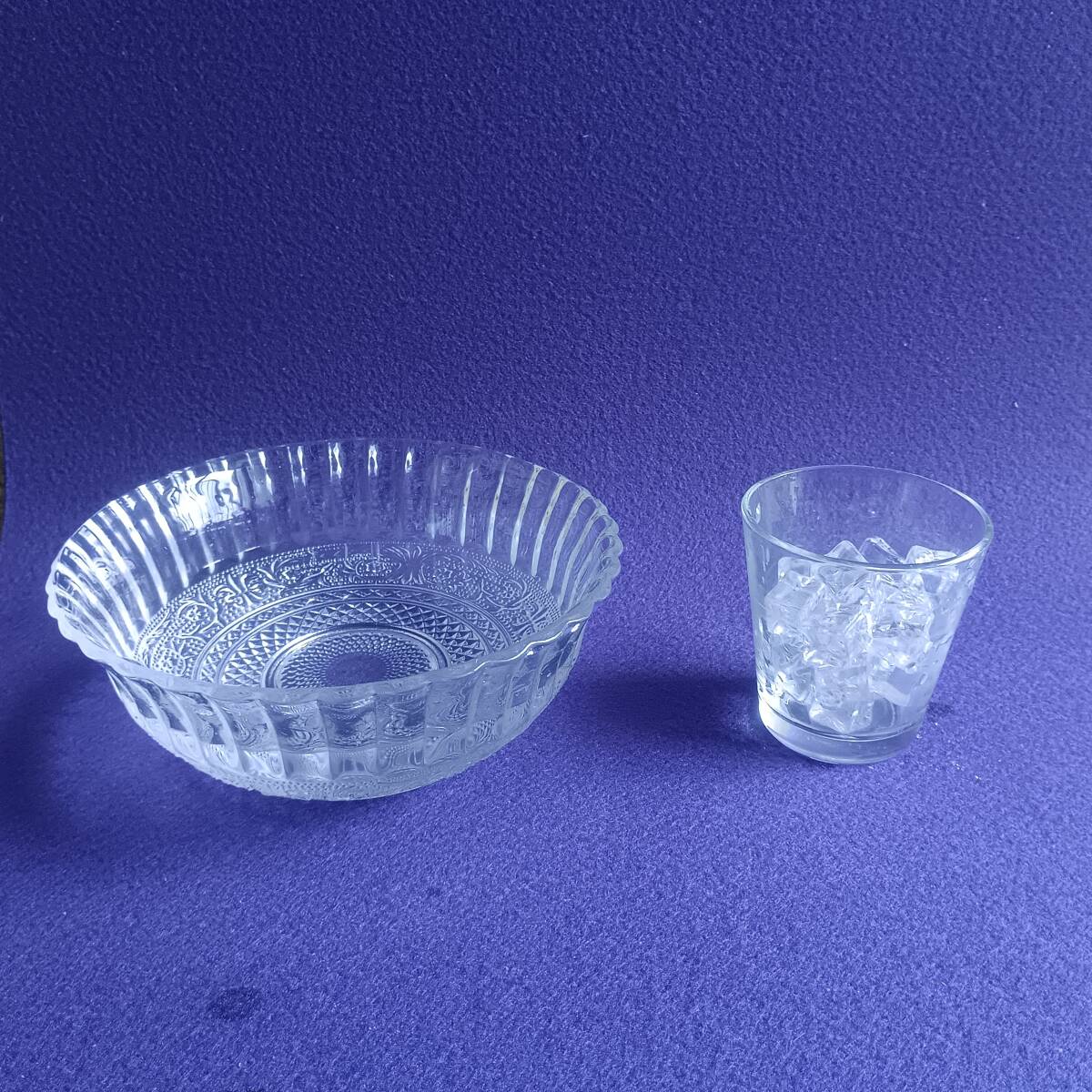 ★もう一度、手を入れて水をすくい上げると水が一瞬に氷になっています、その氷を別のグラスに移し変えます(画像の右側)