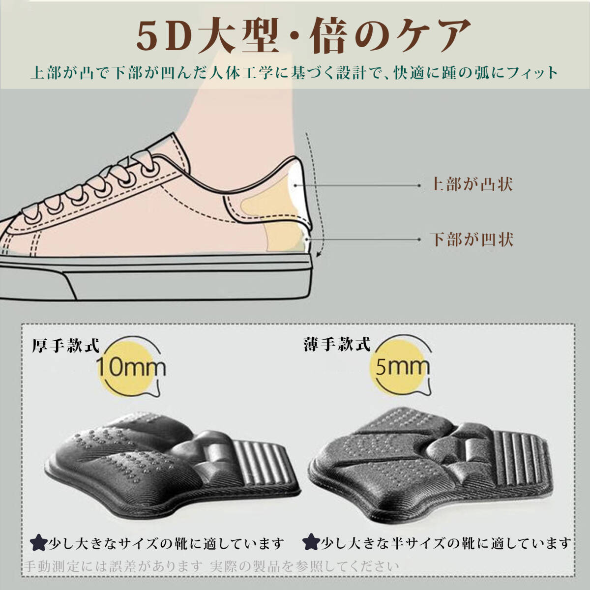 【人体工学設計でフィット感 UP】:上凸下凹の形状でかかとの曲線に完全に沿う。靴とかかとの隙間を埋めてズレを防止し、自然なフィット感で、靴を履くたびに「ああ、これが正しいサイズだ」と感じさせます。