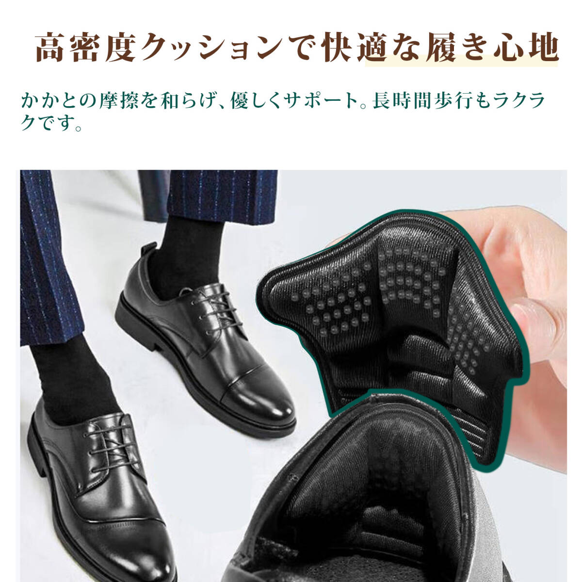 【強力粘着で靴を傷つけない】:強力な粘着剤により、日常の歩行でも脱落しにくい。取り外した後も靴に糊残りがなく、スニーカーやレザーシューズなど愛用の靴を傷つけません。