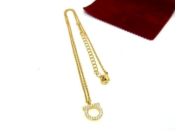 1円 ■極美品■ Salvatore Ferragamo フェラガモ ガンチーニ ネックレス ペンダン卜 アクセサリー レディース ゴールド系 FN9593
