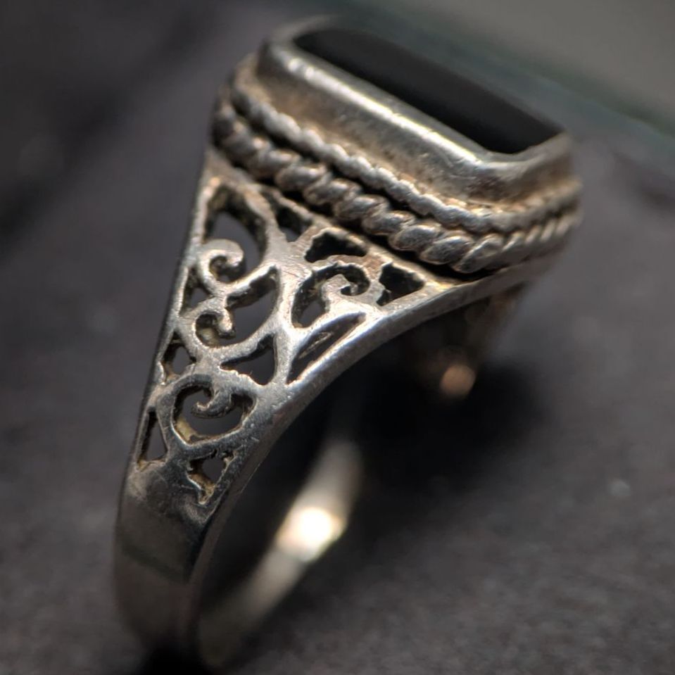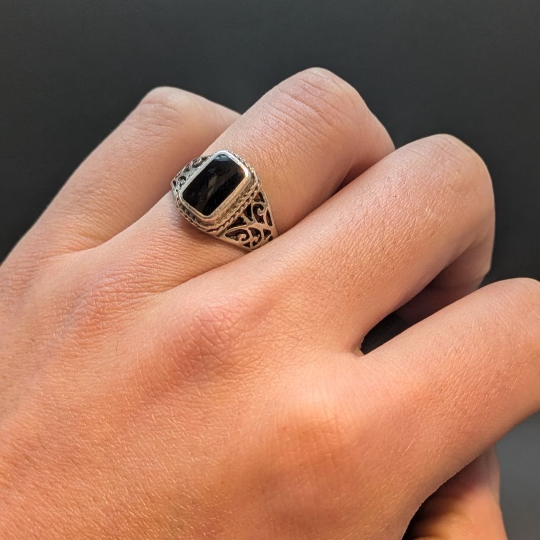 ・ブラックオニキスリング、ヴィンテージシルバー、シグネットリング好きにぴったり