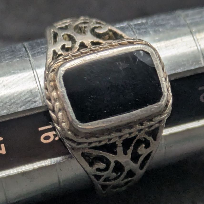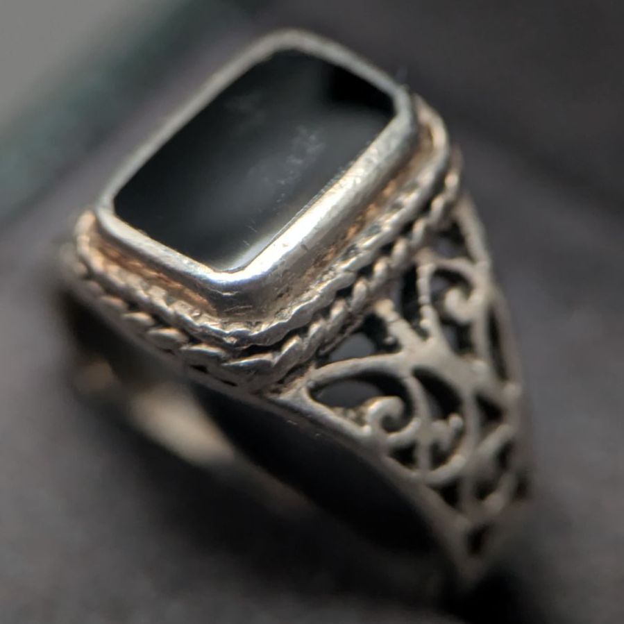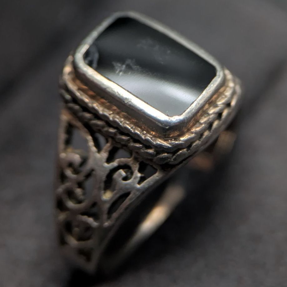 新品のような完璧さをお求めの方よりも、「シルバー特有のいぶし感」「古いオニキスリングの味わい」を楽しみたい方におすすめです。