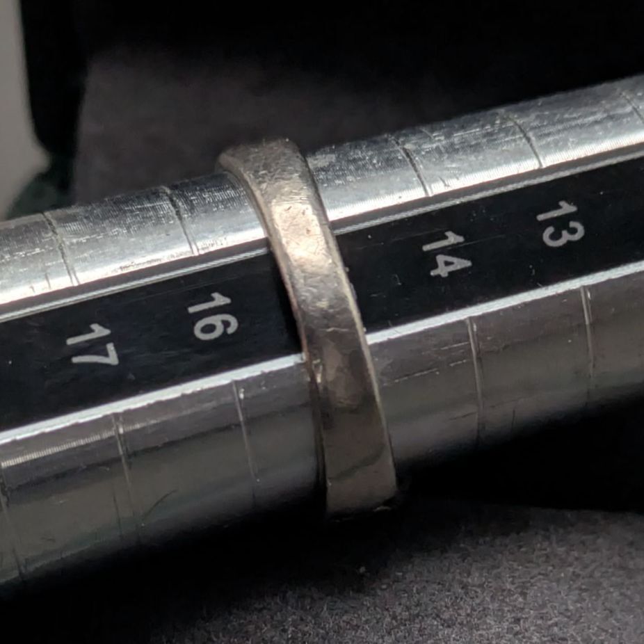 重さは約17.6gとしっかりボリュームがあり、日本サイズ約15号(USサイズ7.5相当)で男女兼用でお使いいただけるサイズ感。モノトーンコーデやきれいめスタイルにはもちろん、古着ミックスやロックテイストの装いにもよく映える一本です。