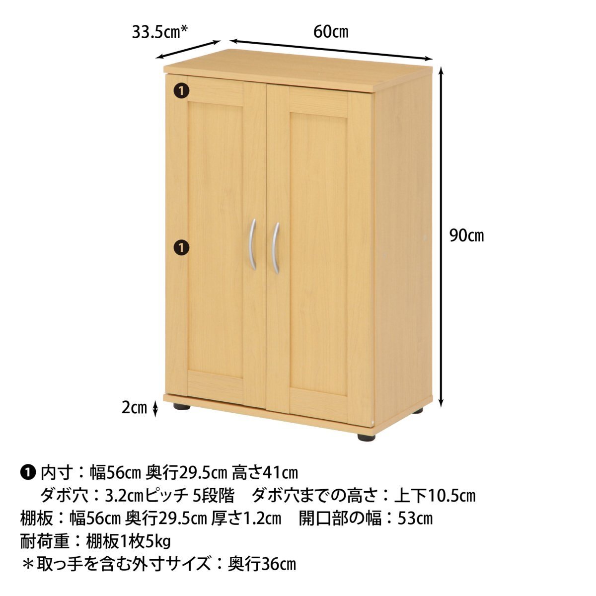 | サイズ | 全体:幅60×奥行33.5×高さ90cm 扉内寸:幅55.5×奥行29×高40.5cm |