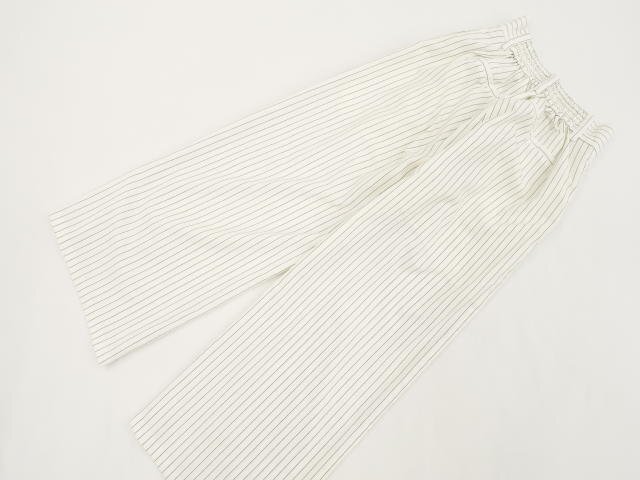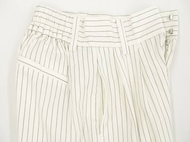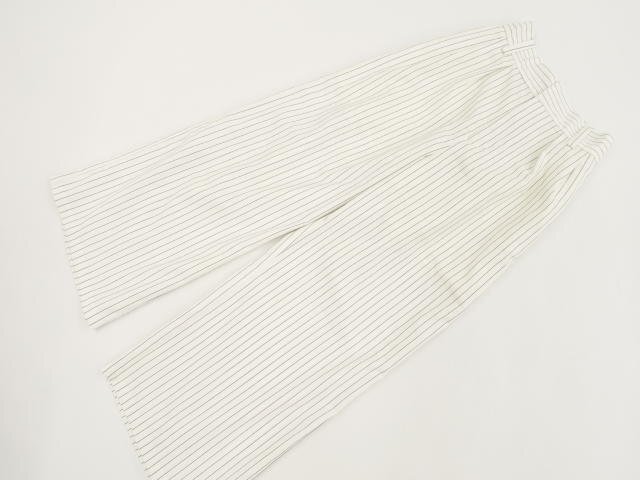 洗えるワンタックワイドパンツ F オフホワイト地 ブラック ストライプ柄