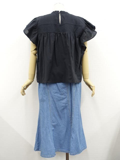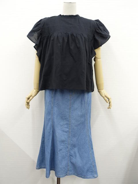 半袖プルオーバーブラウス+ロング丈デニムマーメイドスカート コーディネート上下2点セット L相当 ブラック/インディゴブルー カジュアル系 20代