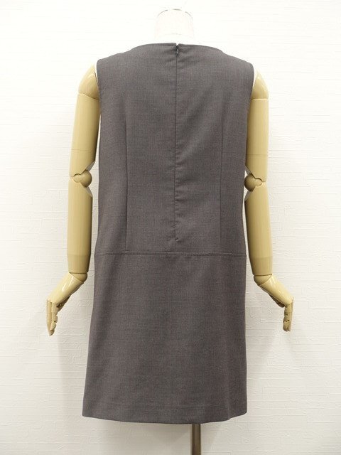 洗える ひざ丈 ラウンドネック ノースリーブワンピース M グレー 【メール便可】