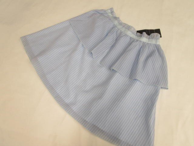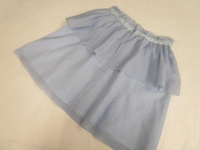 ミニ丈 フレアスカート 11号 ブルー地 パープル ストライプ柄 【メール便可】