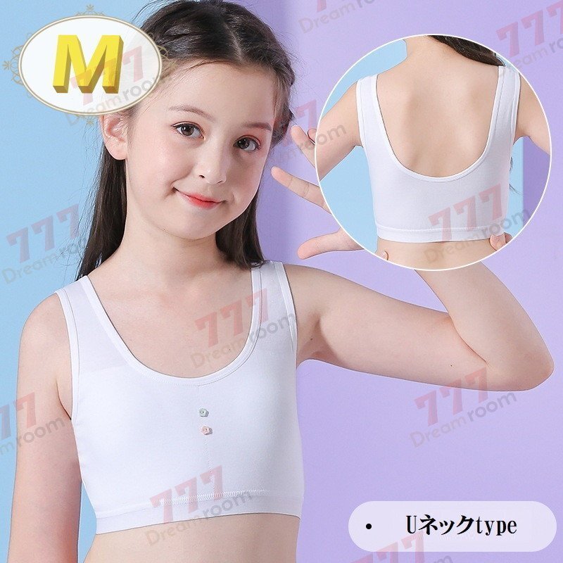 1スタ☆kids Uネック ハーフトップブラ 【M】ホワイト スポーツブラ 子供 ファーストブラジャーインナー 下着 K-410-wh