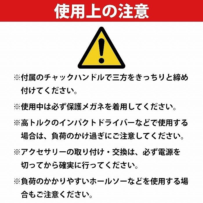 ※負荷のかかりやすいホールソーなどを使用する場合もご注意ください。