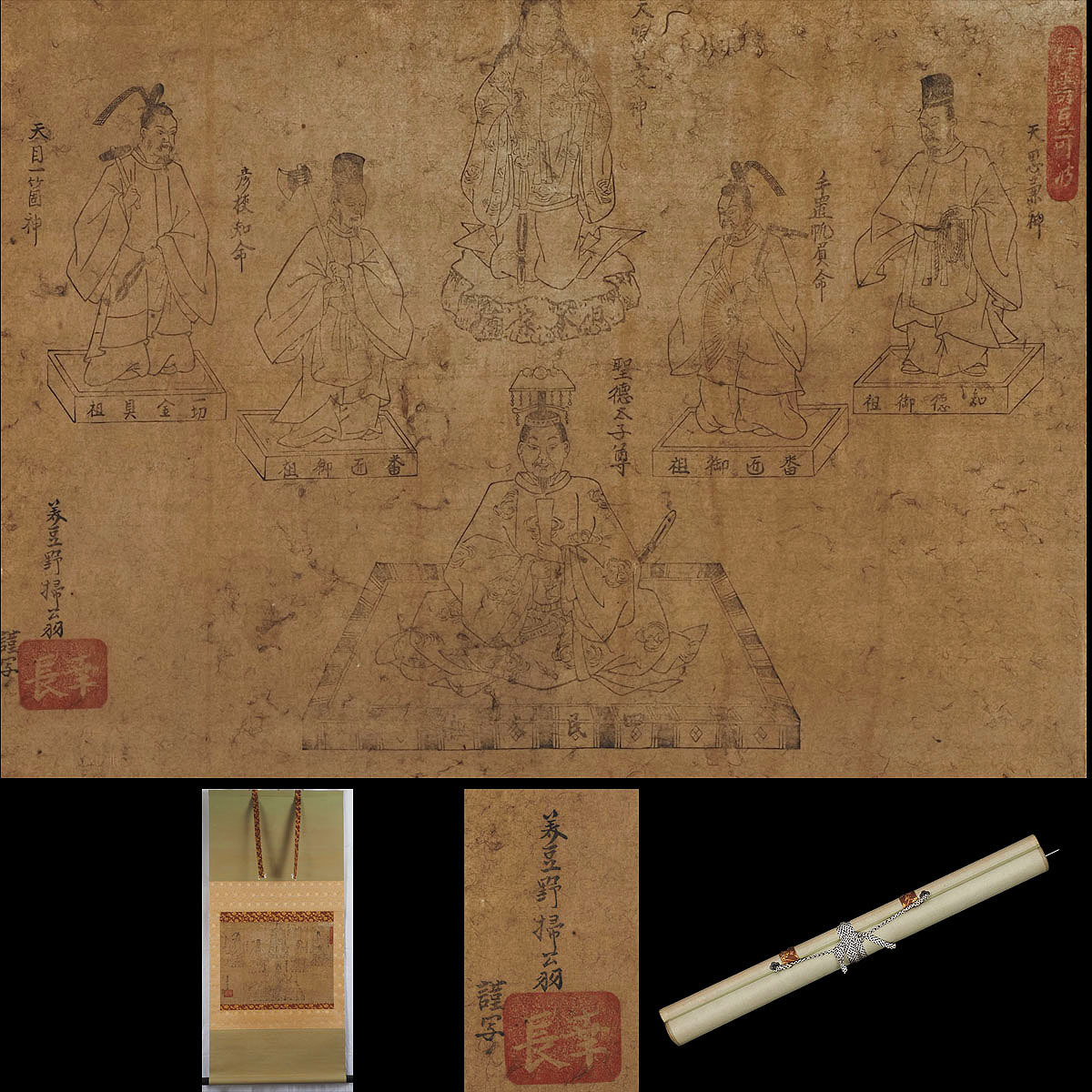| 【真作】A_XG46 旧家初出 在銘 聖徳太子像 木版画 掛軸 / 仏教美術 仏画 仏像 法隆寺 古画 古筆 中国古玩 | |