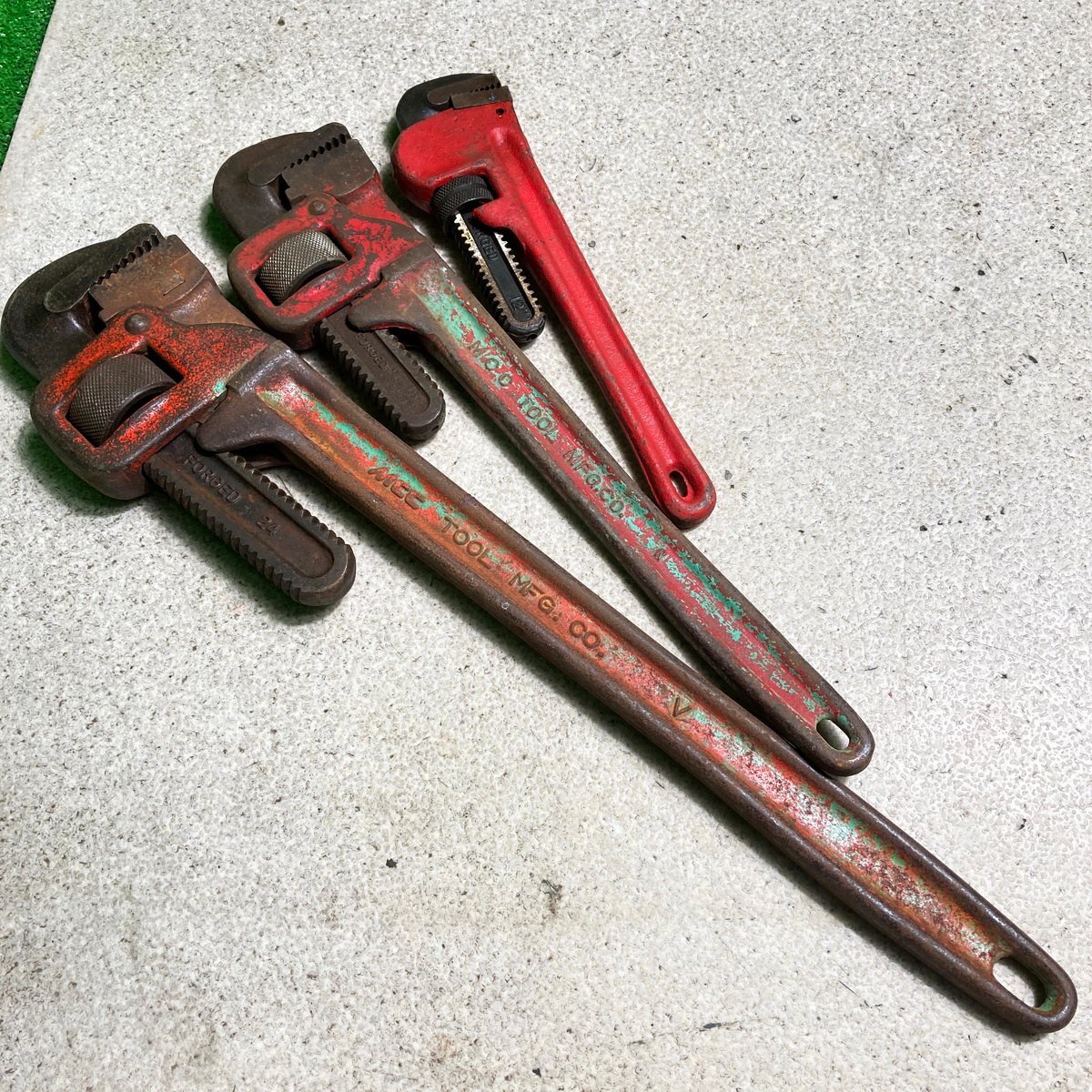 | 商品 | 配清i575 MCC他 パイプレンチ ■ MCC 600mm(24" 掴み65A) 450mm(14" 掴み50A) ◇ ? 300mm(12" 掴み32A) ■ 締付工具 配管工具 ★計3本セット |