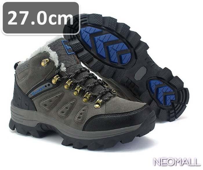 メンズ トレッキングシューズ グレー 27.0cm【861】ハイカット ハイキングシューズ 中綿 防滑 耐磨耗 衝撃吸収 レディース 男女兼用