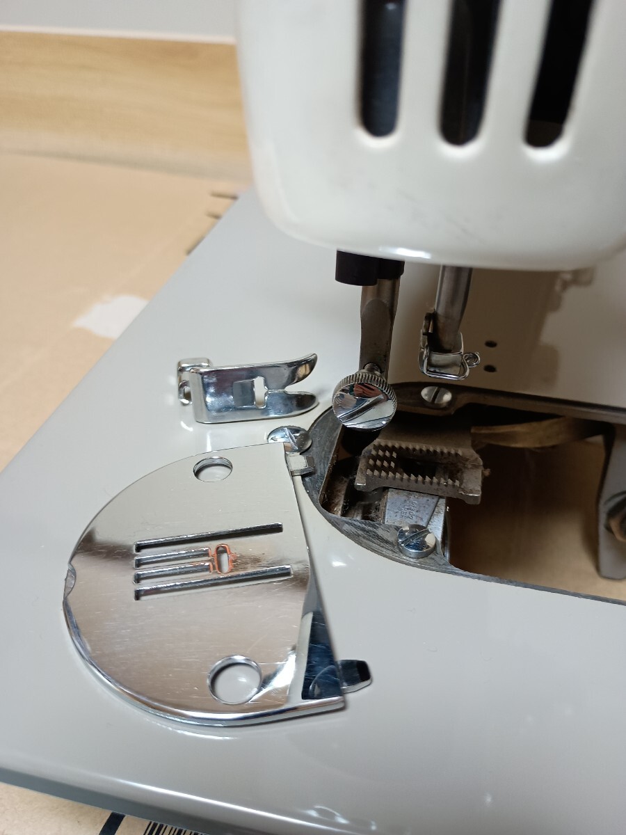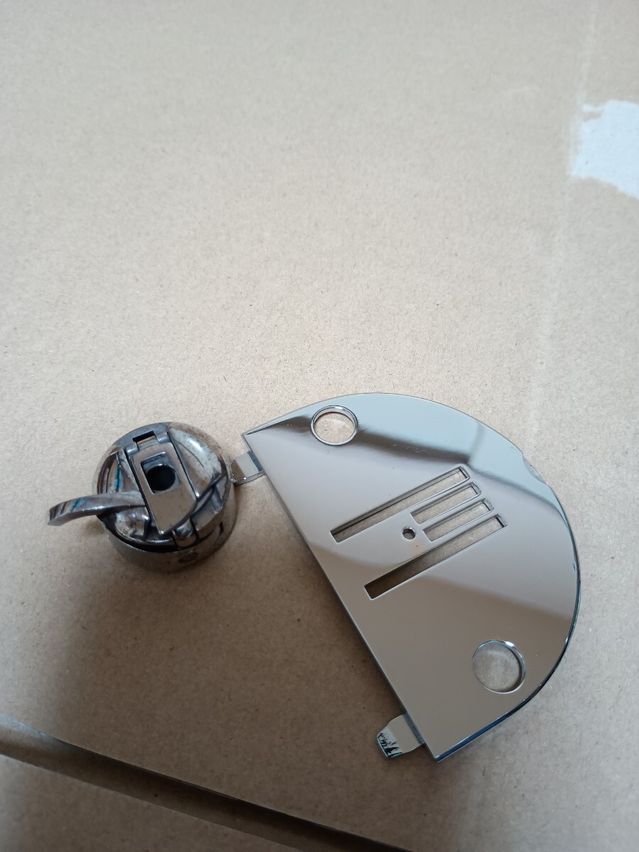 ボビンケース(やや錆あり)と直線用針板が付属します。