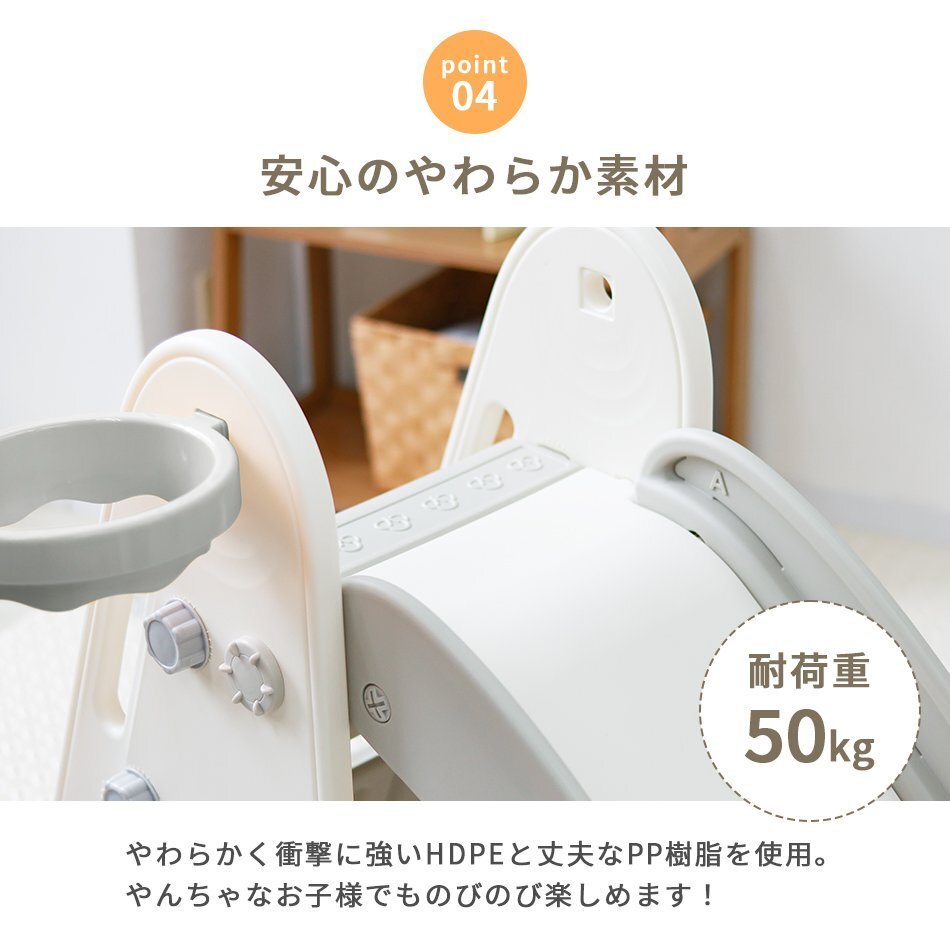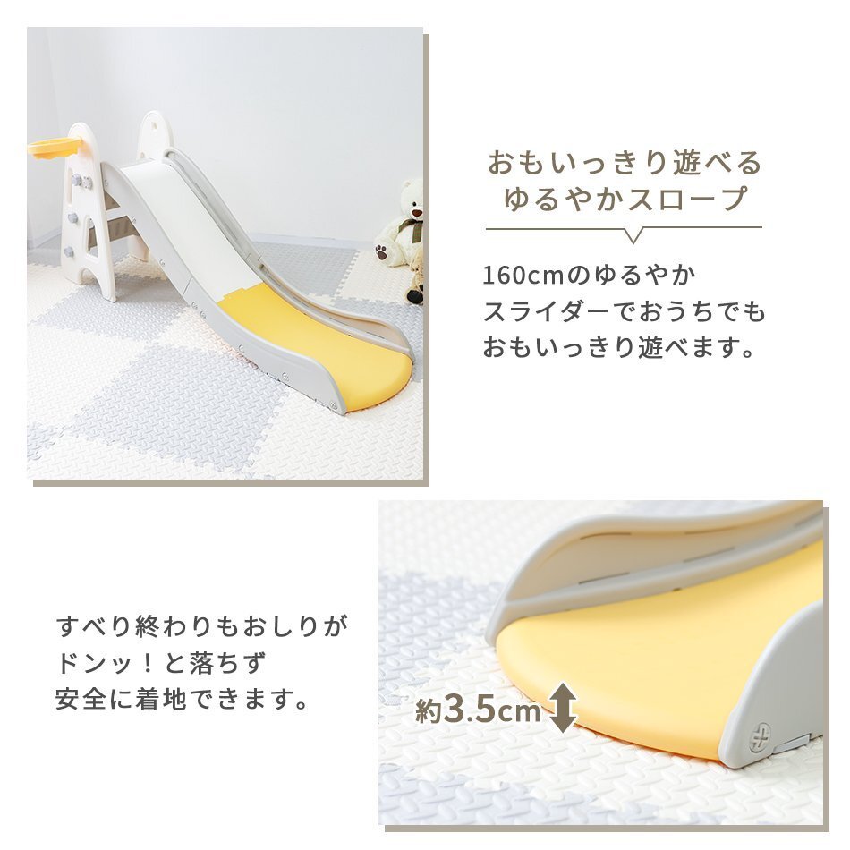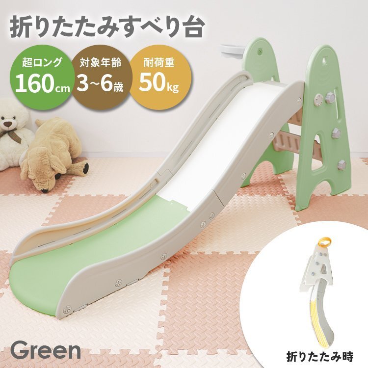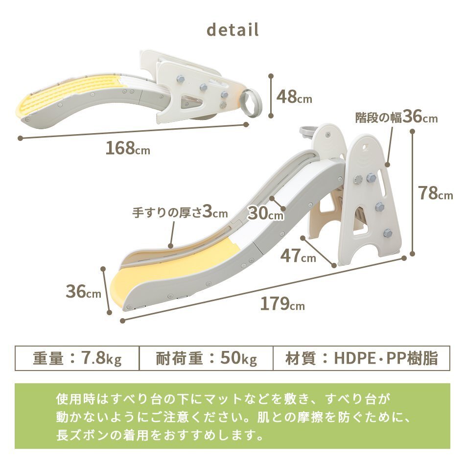 | いつでも遊べる!お子様も大満足! ながーくすべれる折りたたみすべり台です! 160cmのゆるやかロングスライダーで、おうちでもおもいっきり遊べます♪ お子様が使うには十分な耐荷重50kgと、安心して遊ばせることができるアイテム!! すべり終わりもおしりがドンッ!と落ちず、安全に着地できます! 室内で遊ぶことができるので、夏の強い日差しや梅雨の時、冬の寒い日などを気にせずに、一年中いつでも元気に遊ぶことができます。 付属のナットをくるくるはめるだけの簡単組立! 工具は一切必要ありません! 使わないときは折りたたんでコンパクトに収納! 移動やお掃除もラクラク♪ 誕生日プレゼント・クリスマスプレゼントにもおすすめ♪ ■商品コード:GAD007GR ■商品仕様 カラー:グリーン サイズ:(約)179cm×47cm×78cm 重量:(約)7.8kg 耐荷重:(約)50kg 対象年齢:3才から6才 素材:HDPE、PP樹脂 ■内容 本体 ×1 バスケットゴール ×1 ・必ず保護者のもとでご使用し、お子様の行動には十分ご注意ください。 ・使用時は、すべり台の下にマットなどを敷き、すべり台が動かないようにご注意ください。 ・肌との摩擦を防ぐために、長ズボンの着用をおすすめします。 ・組み立て後は定期的にナットの緩みがないか確認してください。 ・平らな場所でご使用ください。 ・商品は、ご使用の前に一度タオル等で拭いてから遊ぶようにしてください。 ・屋外でのご使用には一切責任を負いかねます。予めご了承ください。 ・耐荷重以上の重量を製品にかけると破損や事故の原因になります。 ・大変危険ですので、2人以上で同時に使用しないでください。 ・火気の近くでのご使用はお止めください。変形や破損、やけどのおそれがあります。 ・折りたたむ際は、指を挟まないようにお気を付けください。 ・ご使用前に取扱説明書や使用上の注意を必ずお読みください。 ・ラッピングは承っておりません。 ・海外製品のため梱包や輸送による本体の細かな傷や擦れ・汚れがある場合がございますのでご理解、ご了承ください。 ・商品は、モニターによって色合いが異なって見える場合があります。 ・仕様・デザインは改良のため予告なく変更することがあります。 ■保証期間 7日間 ※商品到着後7日以内の初期不良・破損のみご対応させていただきます。 【新品未使用品です】 |