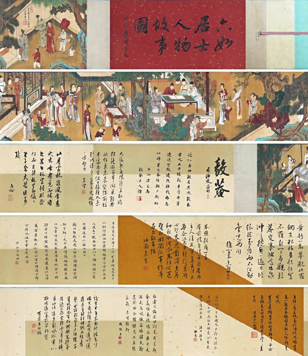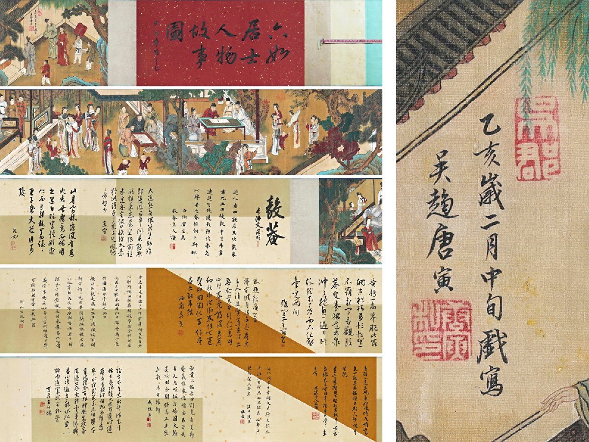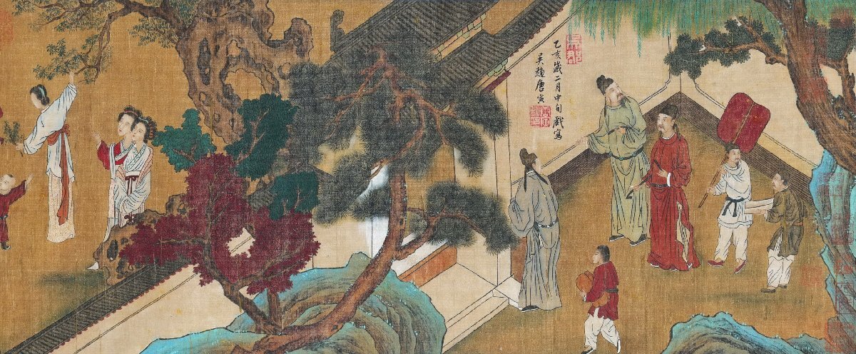 【安】中国明時代画家「唐寅書」絹本「雅集宴楽図長巻」 巻き物 中国画 墨寶妙品 中国書道 古美術 287 サイズ(約寸) |