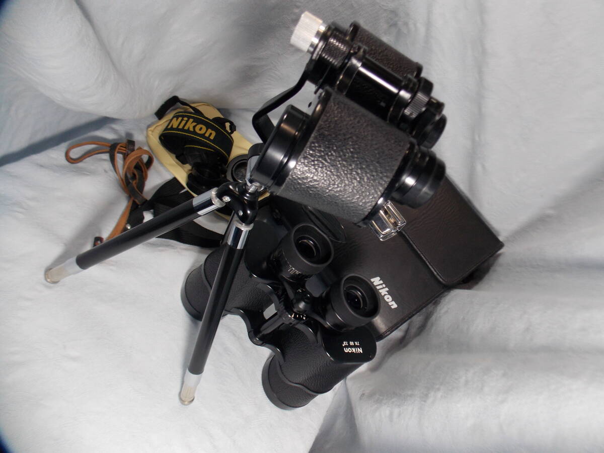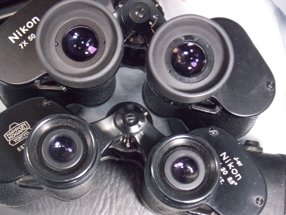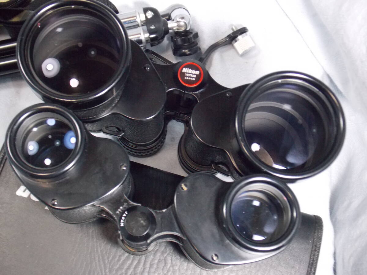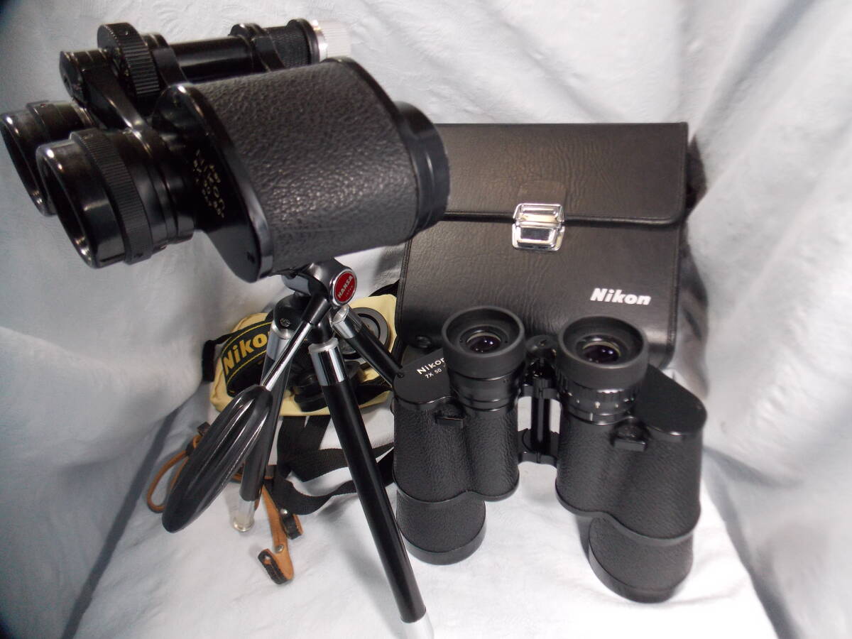 NIKON7x50CFHPzeiss型+NIKON8X30CFzeiss型:ともにレンズ プリズム のクリーニング、光軸調整等のメンテナンス済みで即使用可能。打痕、変形、腐食による固着もなく、焦点、目幅、視度調整等の操作はスムーズでよく見えます。汎用3脚とビノホルダーが付属します/NIKON7x50CFHPzeiss型:使用感少ない美品!光学系の状態も良好で塗装部分やシボ皮のダメージもありません。最大限の明るさを具えた、手振れの少ない夜間対応監視業務用光学双眼鏡。大型で携行使用には不向き/NIKON8X30CFzeiss型:手振れが少なく見やすい双眼鏡。焦点調整時に引っ掛かりの原因となる合掌椀の損傷もありません。接眼レンズ表面のコーテイングの状態もおおむね良好です。より明るさを求める場合は、対物口径が40mmあると理想的です。中型で携行使用向き/全国送料無料!ユーパックおてがる便で配送。この中古出品物に”新品同等の品質”を求めたり、”不安 危惧”を持たれる方は入札をお控え下さい!