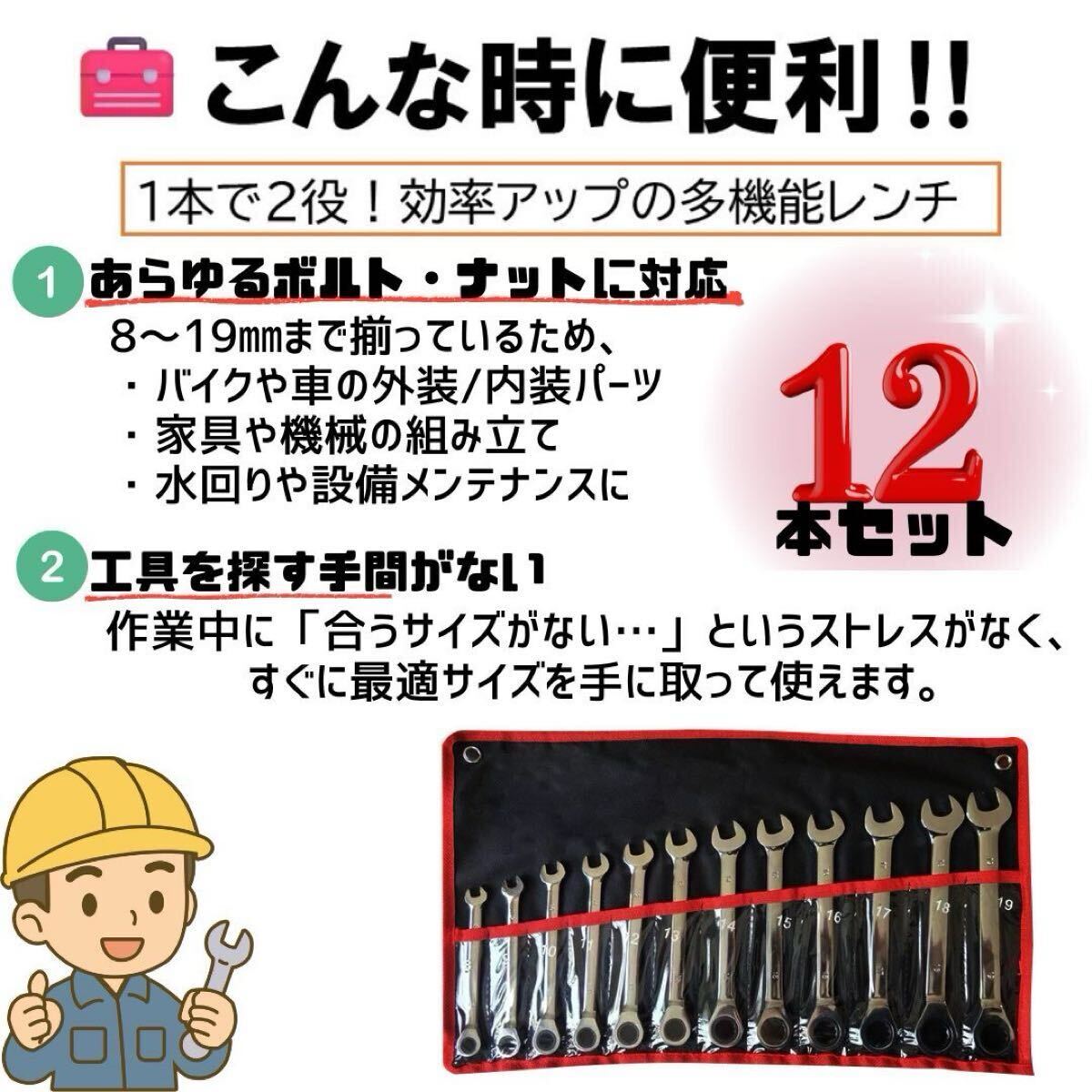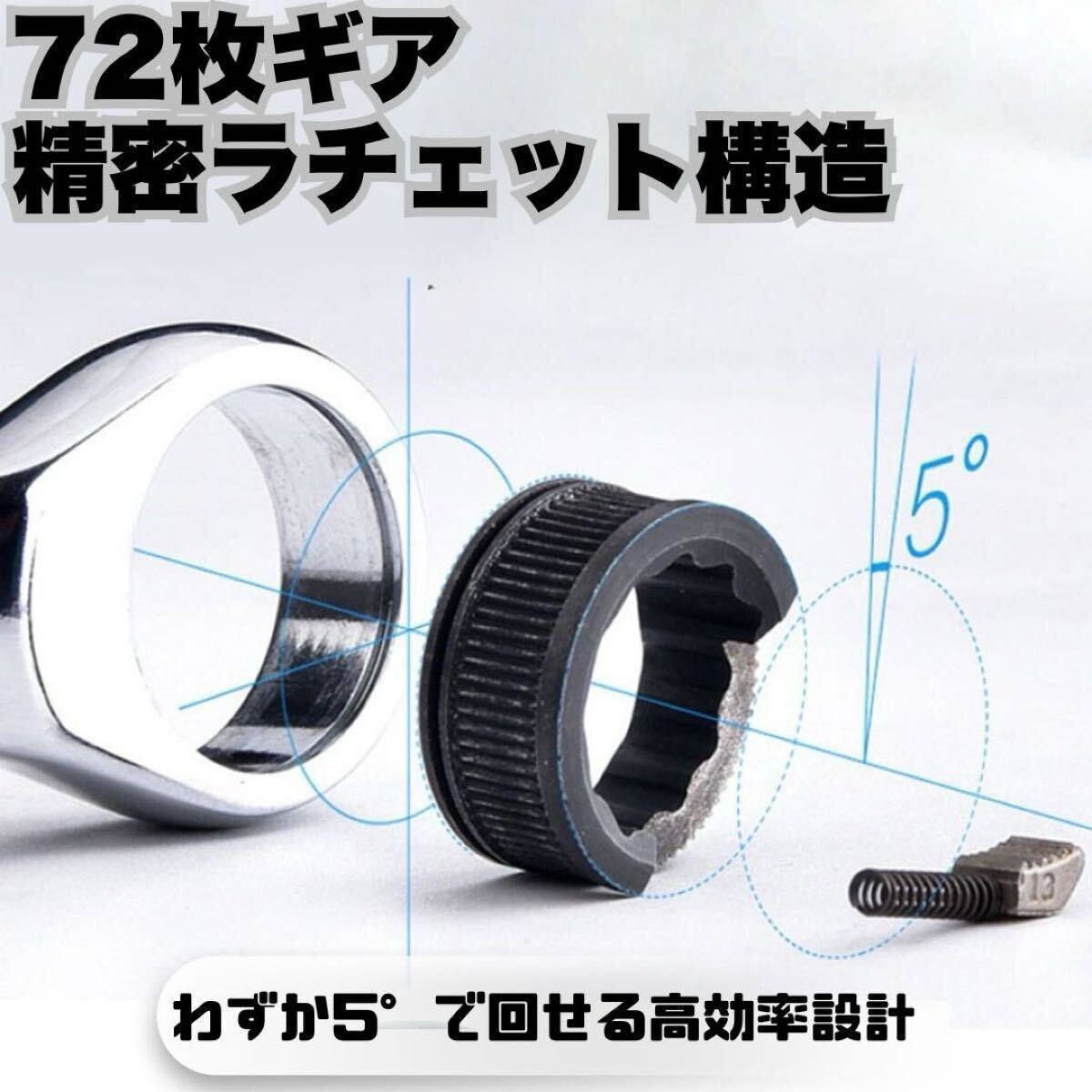 片側はラチェット、もう片側はスパナレンチ。作業効率アップ!