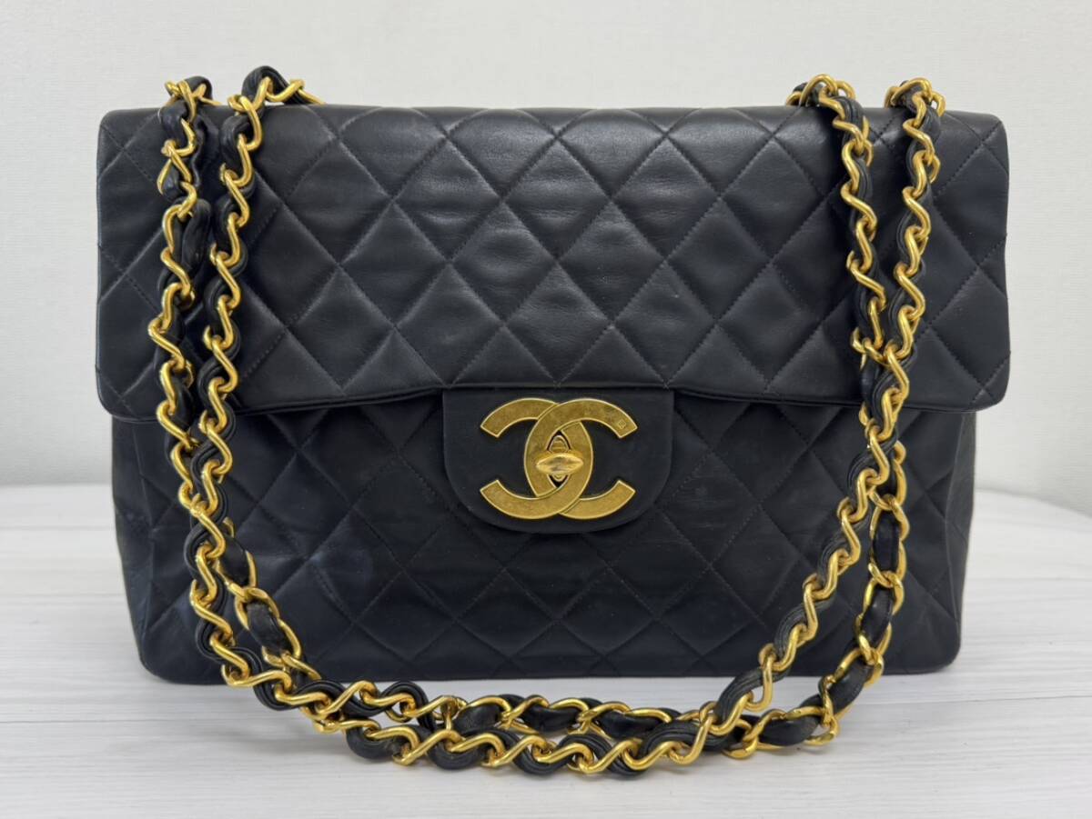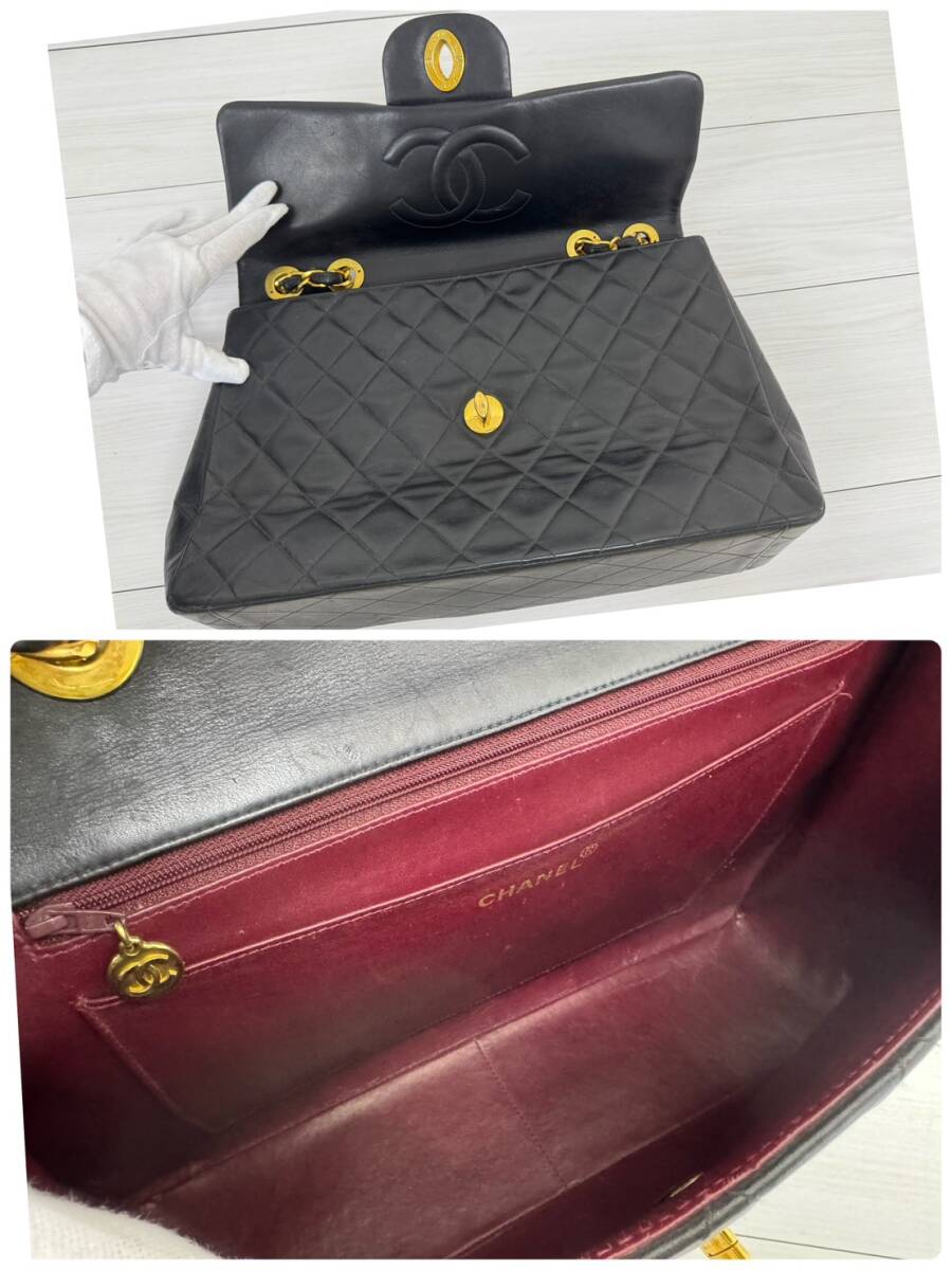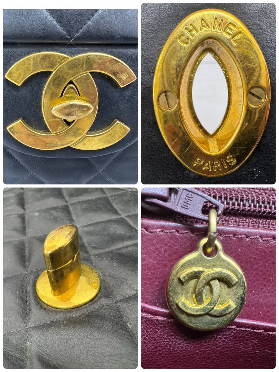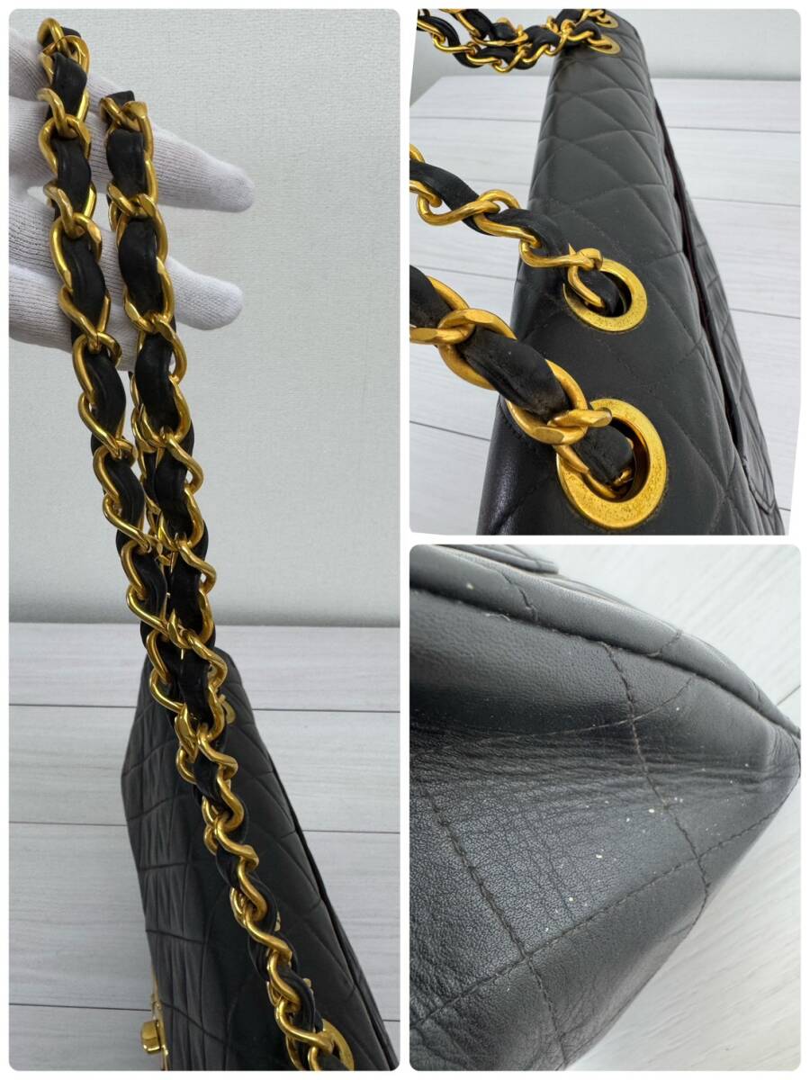 CHANEL シャネル デカマトラッセ34  Wチェーン ショルダー バッグ ブラック  ヴィンテージ ターンロック ココマーク 1円スタート