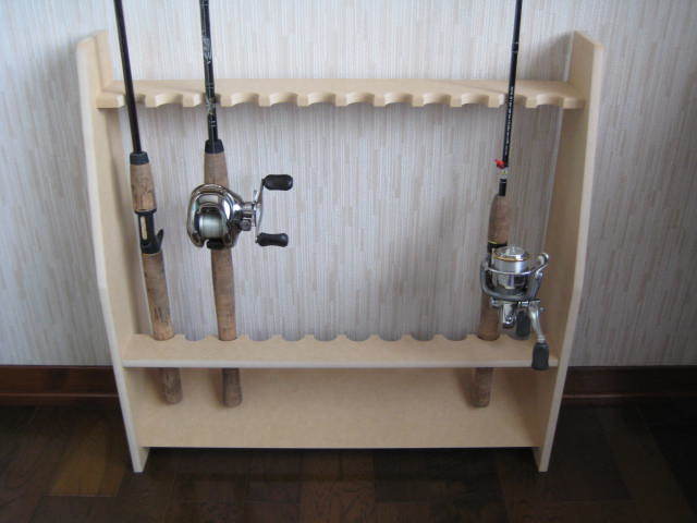 ★新品12本掛けロッドスタンド★木工職人による手作りです。面取りもしてますので、大変綺麗に仕上がっています。★サイズ・・高さ569mm、幅592mm、奥行145mm、板厚12mm、受口直径33mm★本商品は組立て式になっております。説明書を同封していますので、ドライバー1本で5分以内で組立てはできるかと思います★材質は中密度圧縮合板です★ ★組立て式だから送料が安い★ ★ロッドスタンド以外の商品は付属致しません。ロッドスタンドのみです★ |