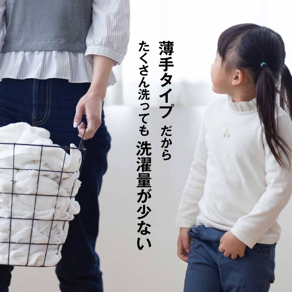 お洗濯後の乾きも早い「ほどよい」厚み、吸水性抜群の綿100%。