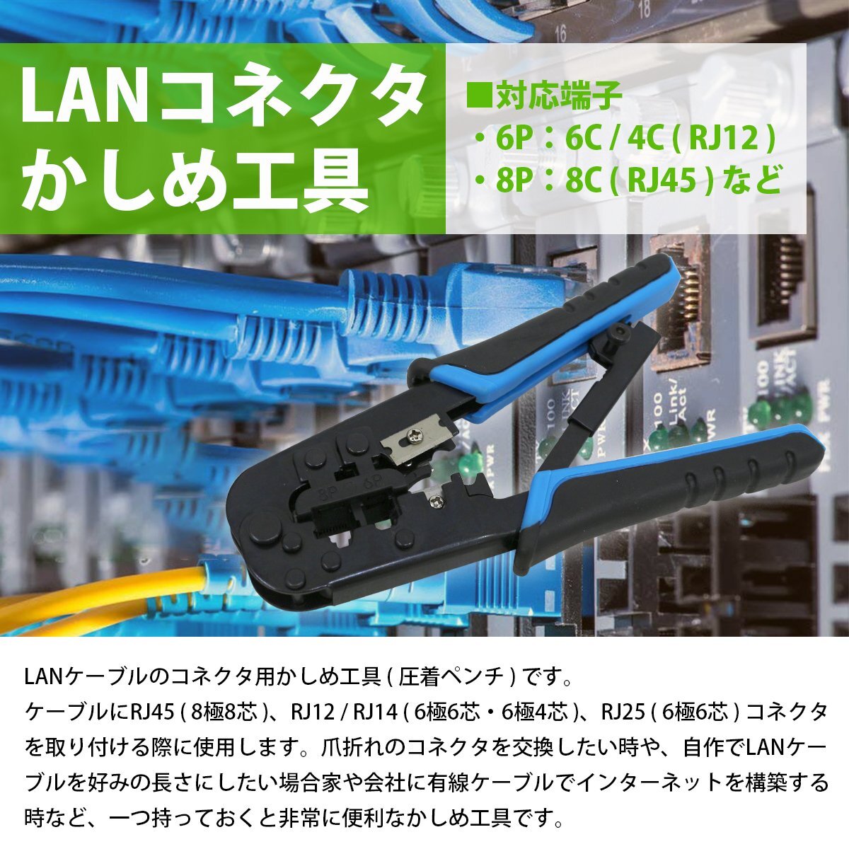 【送料250円】LAN コネクタ 圧着 ペンチ RJ45/RJ12/RJ14/RJ25 かしめ 工具 配線 加工 ペンチ 圧着スリーブ コネクタ ケーブル 断線