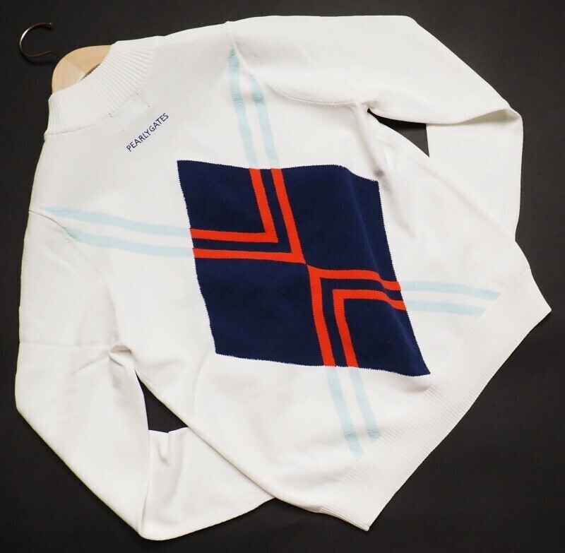 新品正規37400円 PEARLY GATES パーリーゲイツ アーガイルパターン ニット レディース1(M)ホワイト(030) 1274902