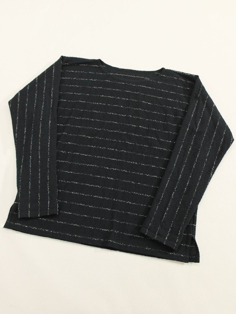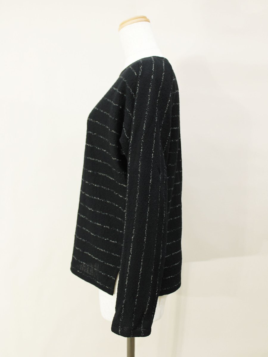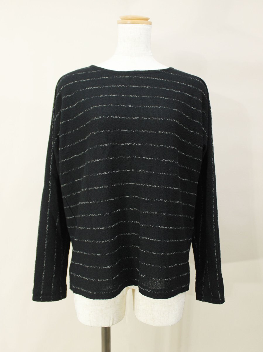 2024年極美品 ヨーガンレール かすれボーダー柄ウールコットンニットプルオーバー M/黒 sd032