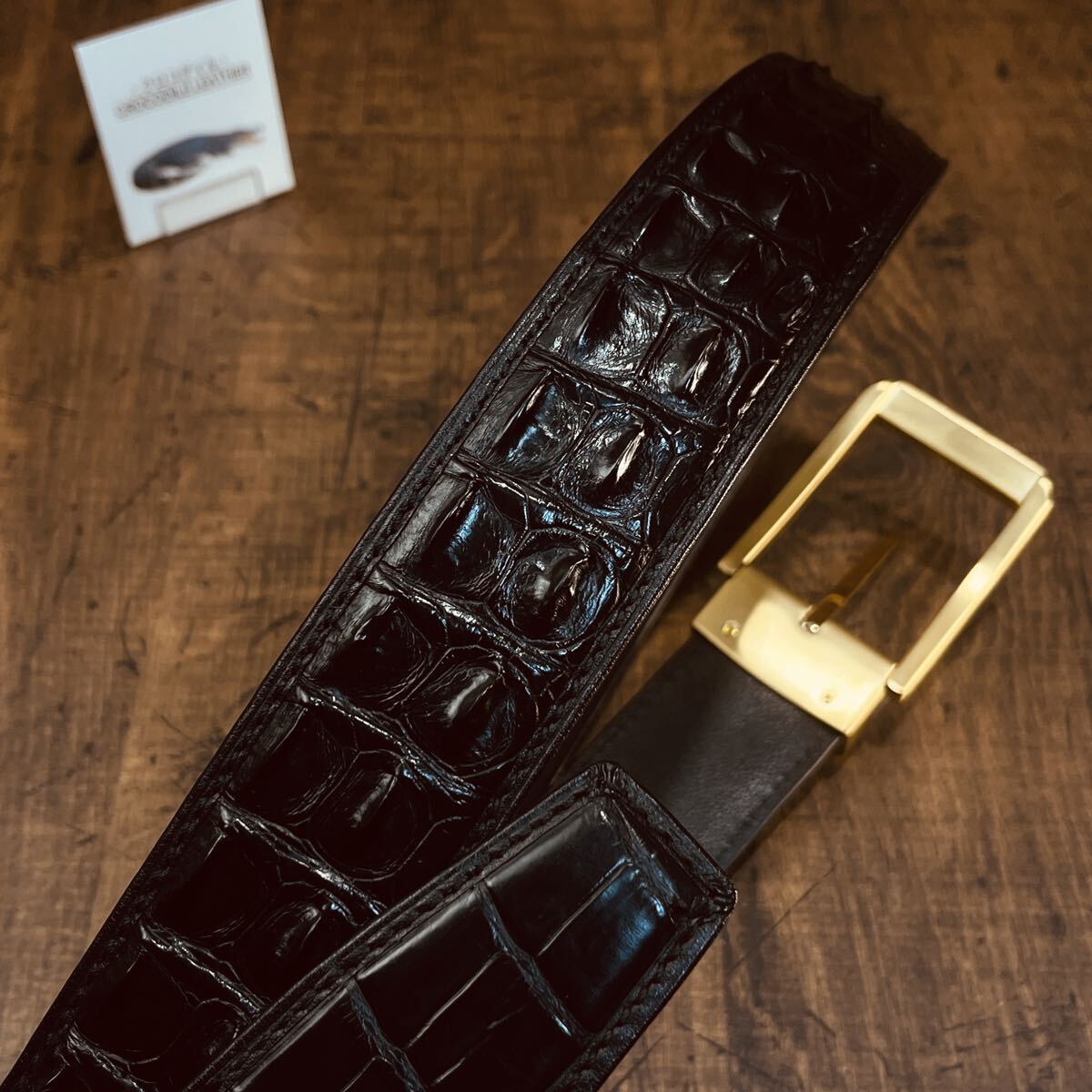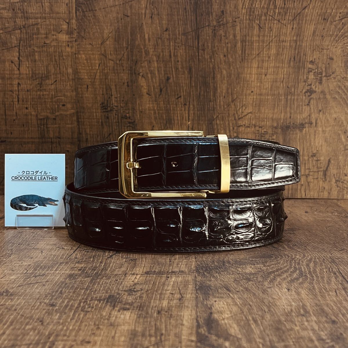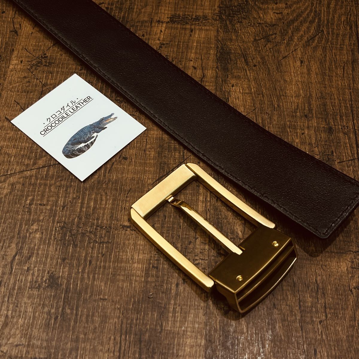 クロコダイルを縦一本に使ったベルトです。 一直線にカットしてありますので、美しく模様が並び、強度もあります。