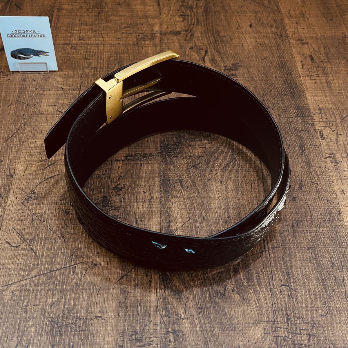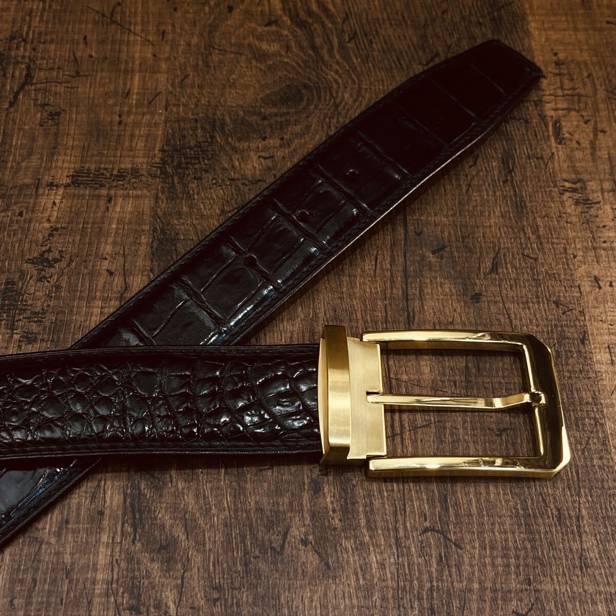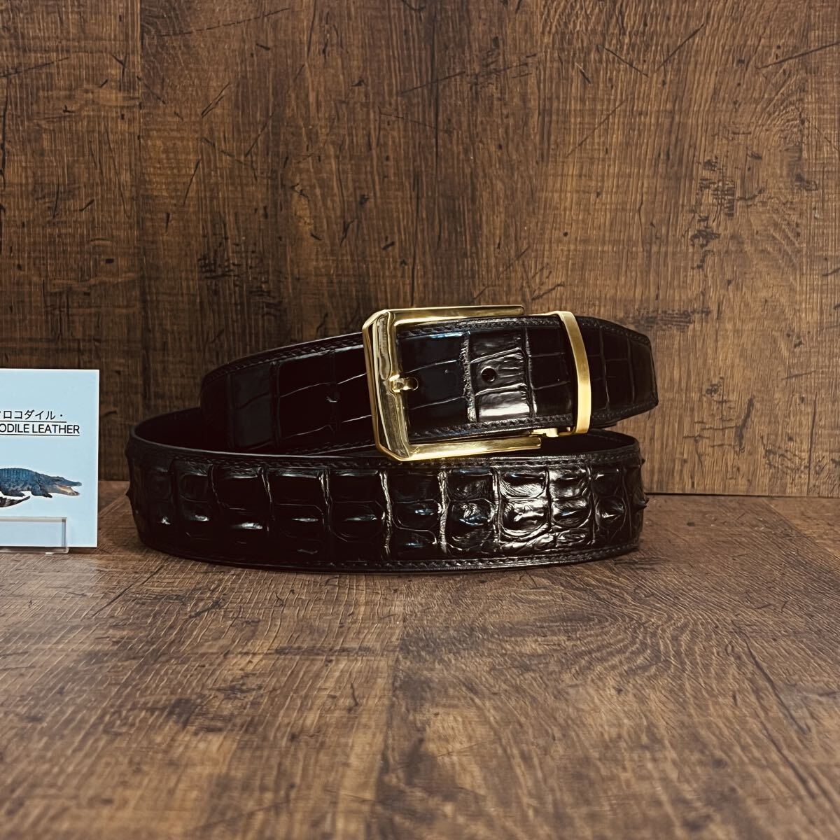 クロコダイルを縦一本に使ったベルトです。 一直線にカットしてありますので、美しく模様が並び、強度もあります。