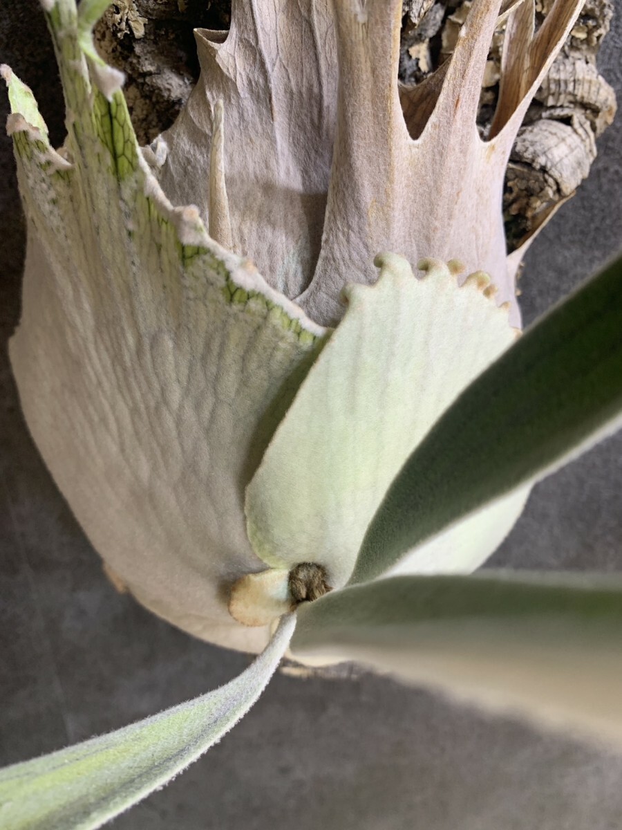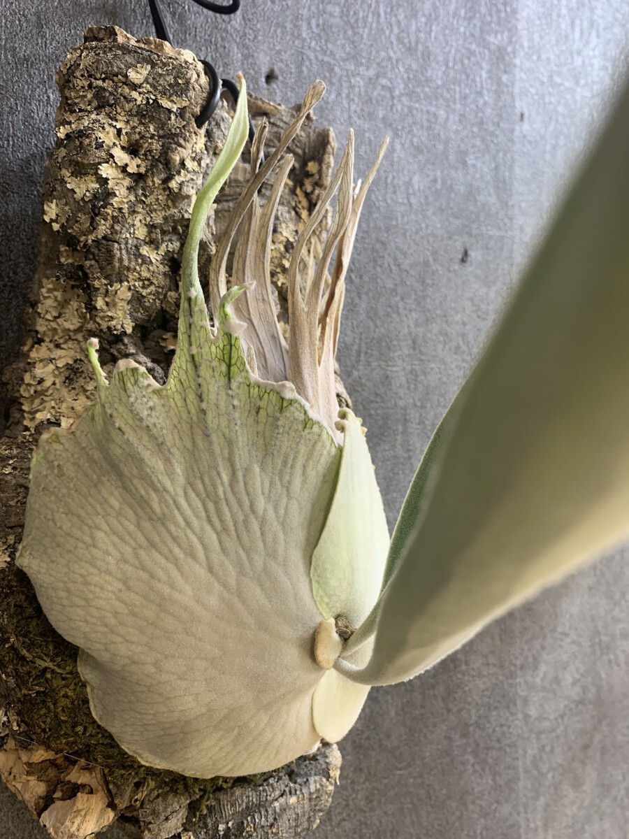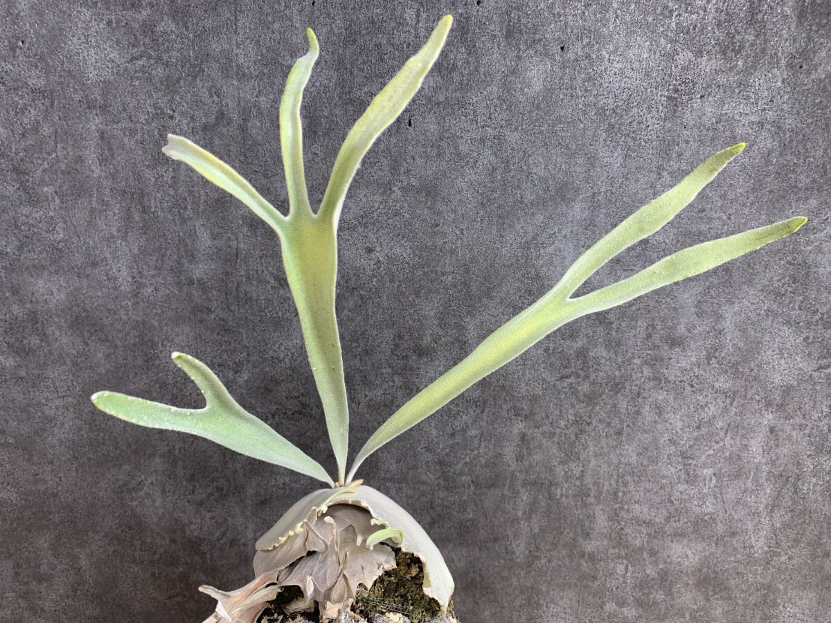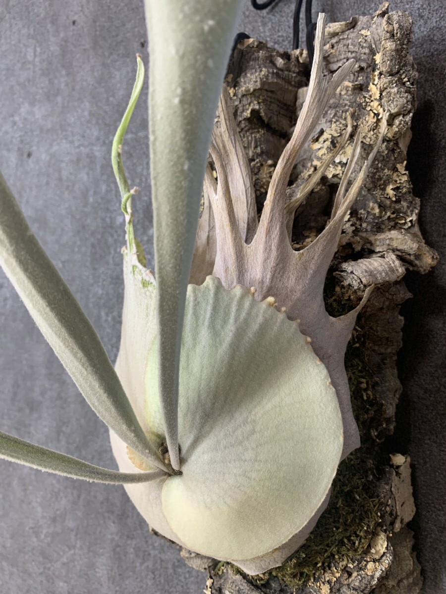 大きくなると圧巻の姿です。貯水葉は白く細く伸び上がり、胞子葉も厚く力強いです。