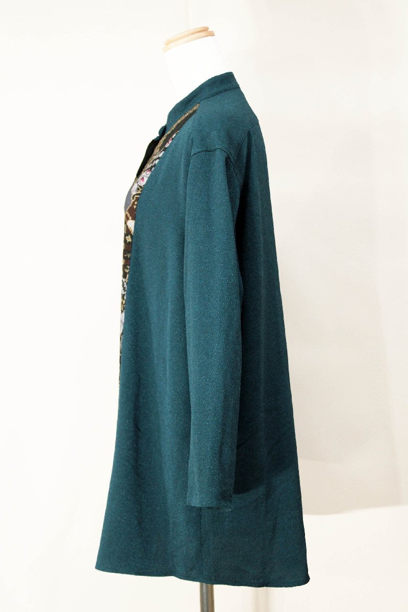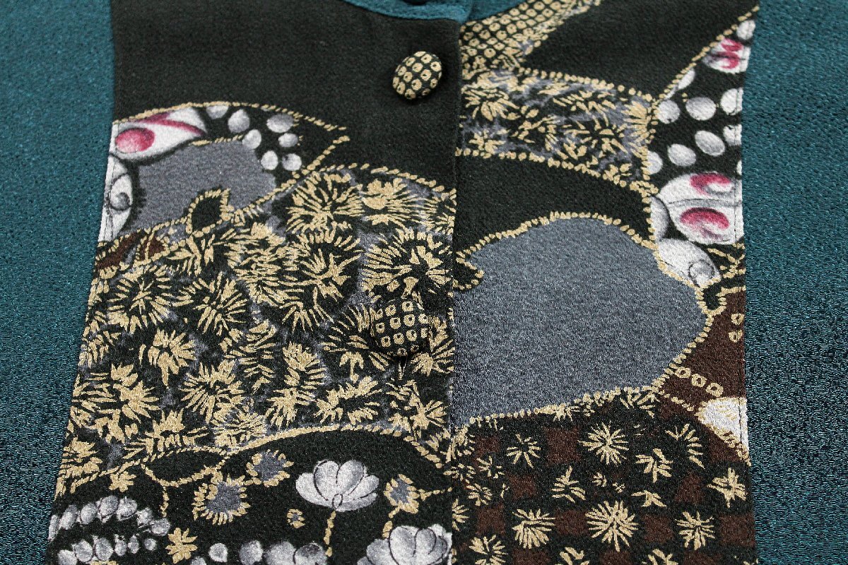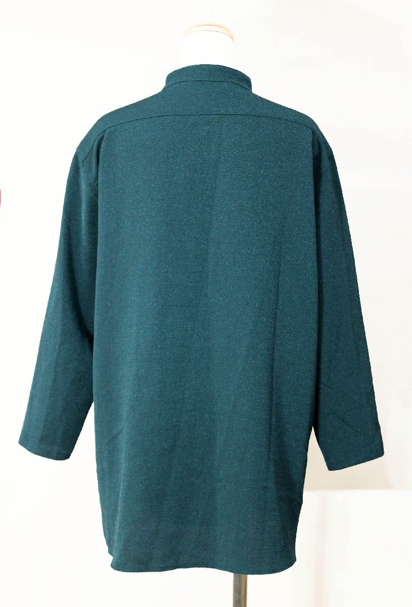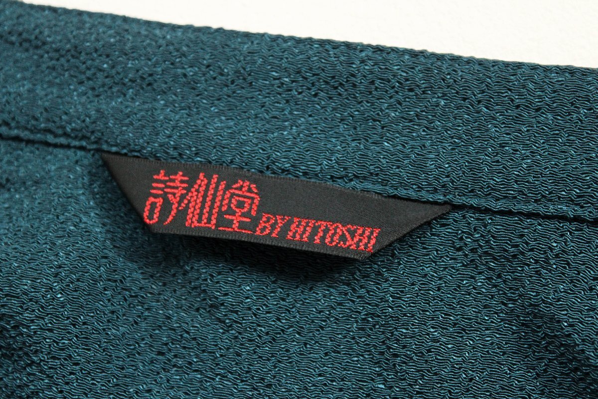 ☆美品☆詩仙堂/ちりめん織り和花柄プリント長袖シャツチュニック:青緑系yx964