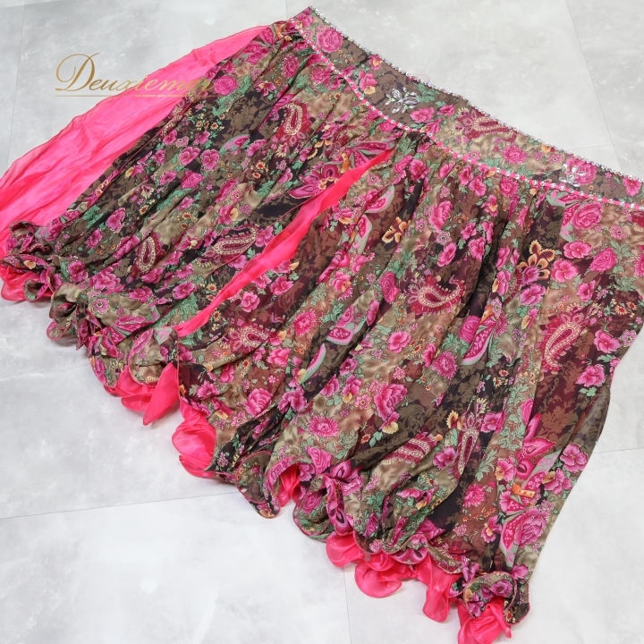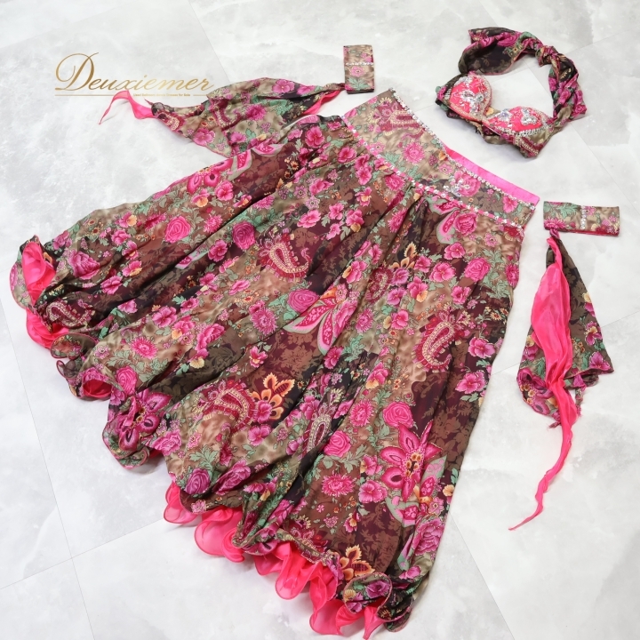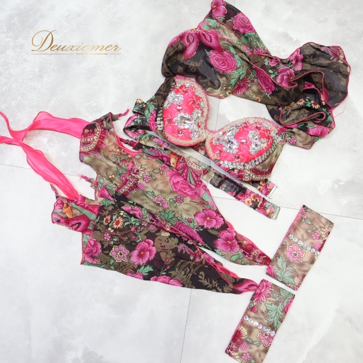 | 【商品名】ベリーダンス オリエンタル衣装 上下セット トップス 【サイズ】表記無し 平置き実測:パッド両端長さ約27cm、ネックストラップ右約57cm 左約51cm、 アンダーストラップ(ブラ部分を除く)上約35cm 下約38cm ※実測の為、多少の誤差はご容赦願います 【仕様】 ・アンダーストラップのみ伸縮性有り 【品質表示】 表示無し スカート 【サイズ】表記無し 平置き実測:総丈約90cm、幅約85cm、スリット約76cm ※実測の為、多少の誤差はご容赦願います ※クリップで留めて撮影しています 【仕様】 ・ホック仕様 ・1か所スリット有り 【品質表示】 表示無し ------------------------------------ 【ポイント】 ▽ブラウンを基調とした華やかな色合い ▽かわいい花柄デザイン ▽アーム飾り付き! ------------------------------------ 【撮影時使用トルソー】 種 類:女性用トルソー9号 (一般的に使用されるサイズです) サイズ:肩幅約38cm、バスト約86cm、ウエスト約64cm、ヒップ約84cm |