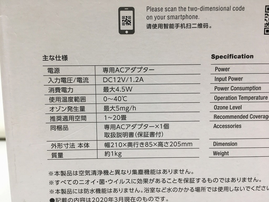 【未使用】 マクセル maxell オゾン除菌消臭器 MXAP-AE270WH