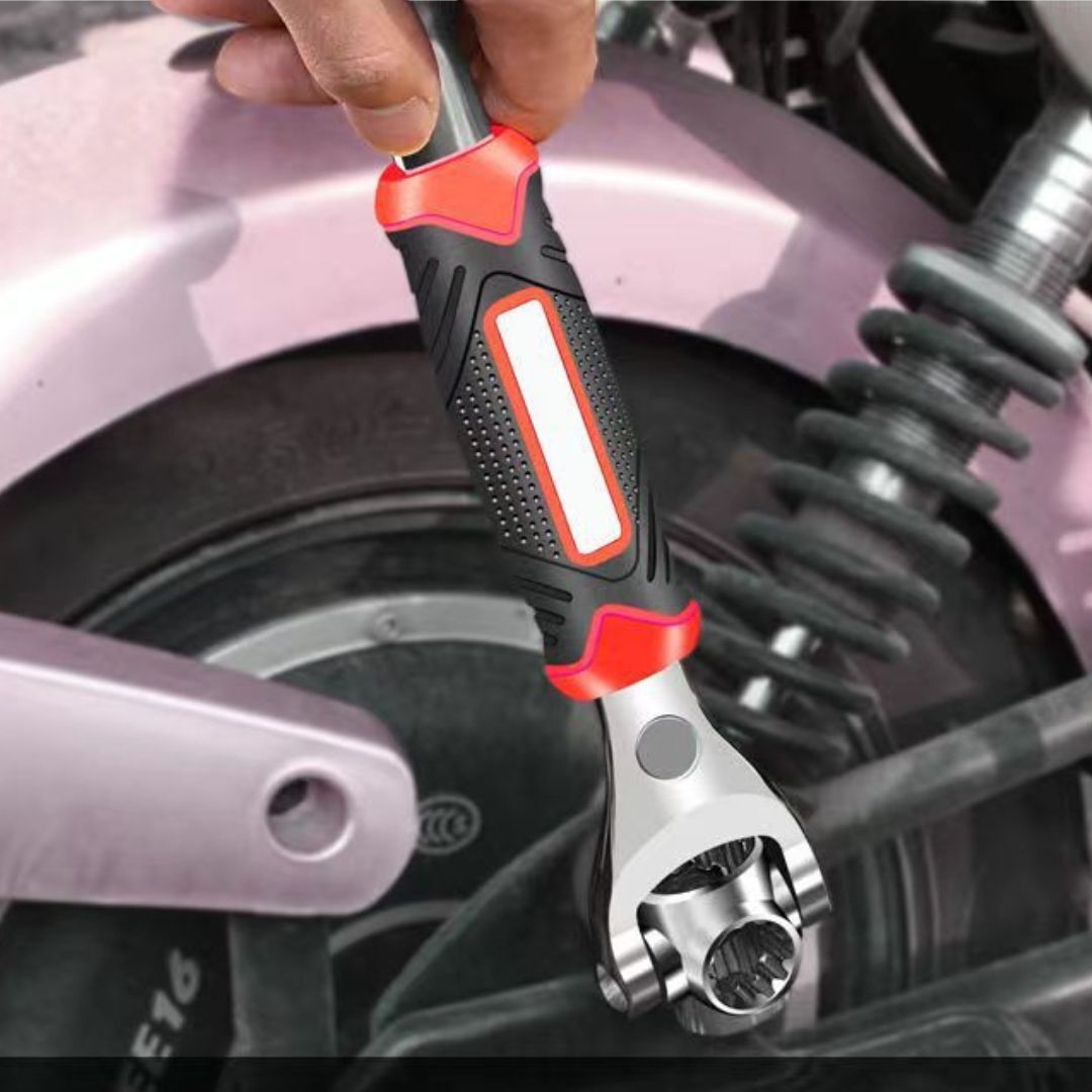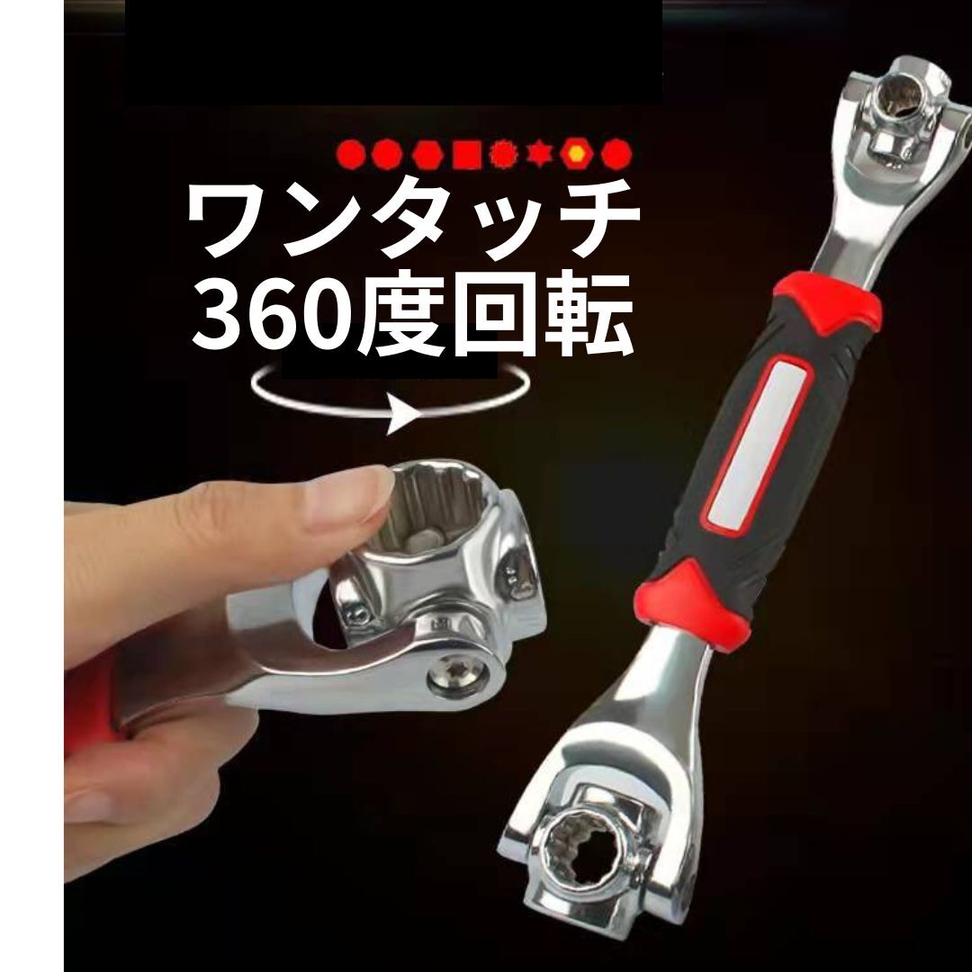 万能 六角 レンチ ソケット スパナ 8in1 工具 多機能 ボーン マルチ メガネ モンキ ボルト ナット DIY 車 バイク 自転車 車載道具プロ メンテナンス 貫通式回転ヘッド