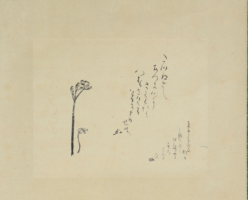 12085■【真作】益田孝 わらび画賛 肉筆 共箱 益田鈍翁 三井物産創業 茶人 掛軸