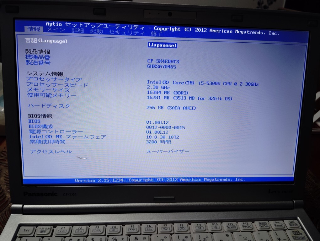現状品 Panasonic レッツノート CF-SX4 12.1インチ バッテリーあり ストレージあり メモリ16GB OSあり