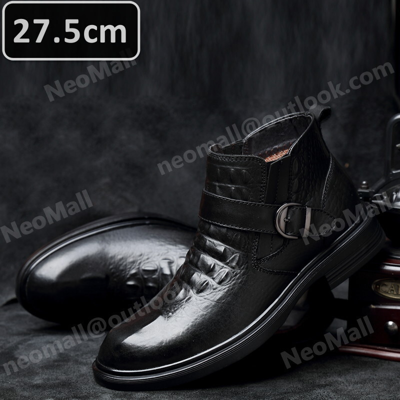 ワニ柄 型押し 牛革 メンズ シュートブーツ ブラック サイズ 27.5cm カジュアル 屈曲性 通勤 軽量 インポート品【n026】