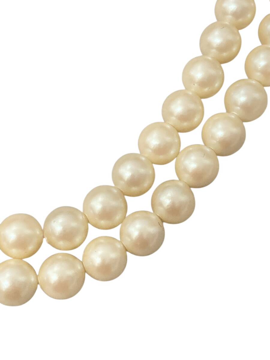 (M) パールネックレス イミテーション 2連 直径約0.7㎝ 留め具シルバー ラウンド 真珠 冠婚葬祭 1円~