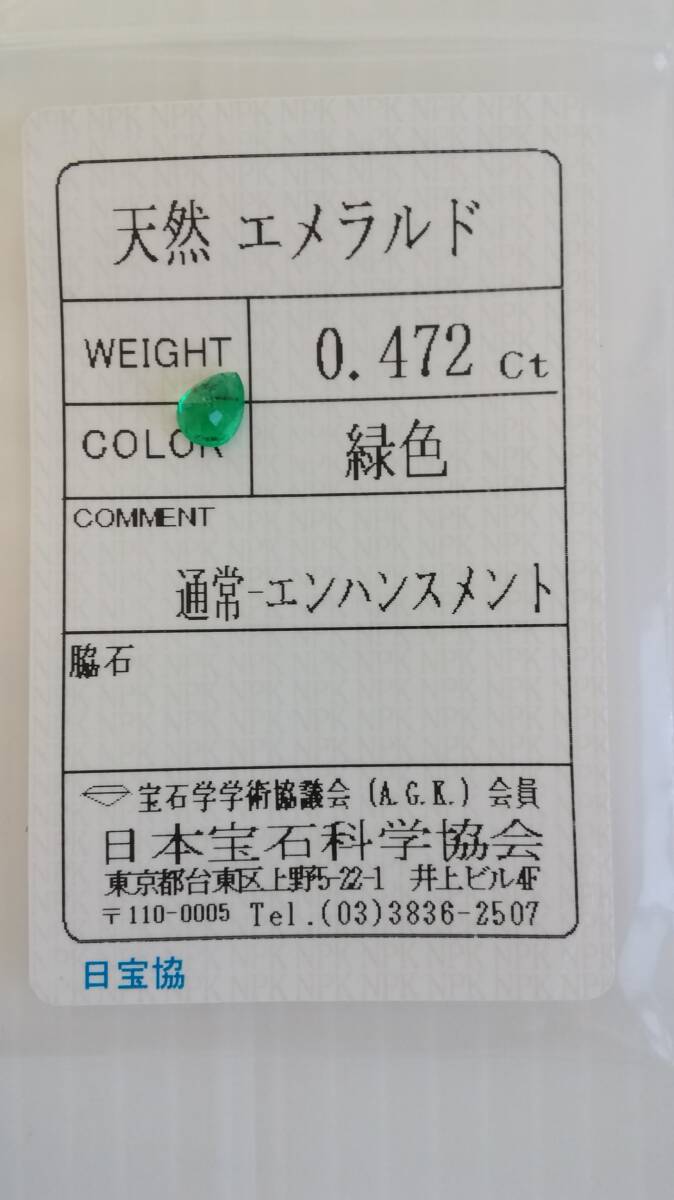 天然 エメラルド ルース 5.8x4.5x3mm、0.472ct ソーティング付き