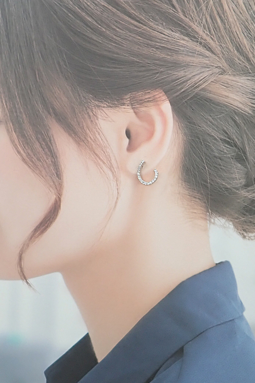 【セール開催中】ダイヤモンド ピアス K18ホワイトゴールド フープ風 送料無料 中古 宝正 903390