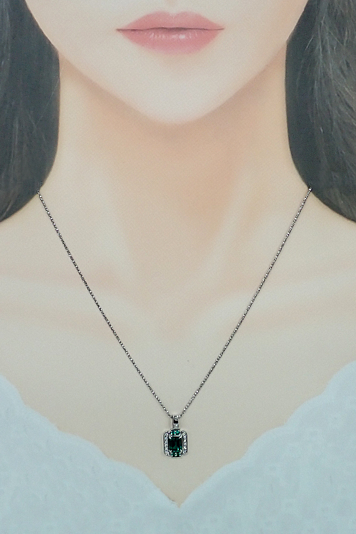コメントクレサンベールの、思わず目を惹く鮮やかなグリーンカラーの再結晶エメラルドがあしらわれた、エレガントな雰囲気のネックレスです。取り巻きにはダイヤモンドがあしらわれており、すっきりとした華やかな煌めきが再結晶エメラルドを引き立てます。