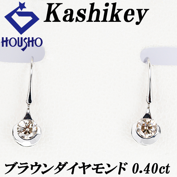 商品名カシケイ ブラウンダイヤモンド ドッツ ピアス K18ホワイトゴールド Kashikey 雫 しずく ドロップ 涙 一粒石 揺れる