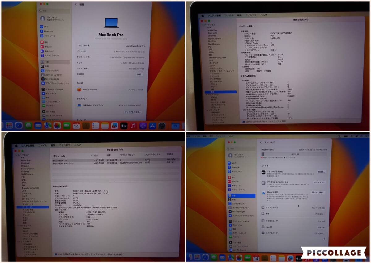 MacBook Pro 13インチ2017/2Thunderbolt 3 ports/ A1708/ i5/ SSD500GB/メモリ16GB/Venture/動作品(2512157)
