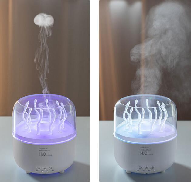新作加湿器小型卓上超音波 超静音 280ml大容量 車用加湿器 クラゲモード+大霧モード 七色のライトアロマ対応 2H/4H/8Hタイマー 静音 軽量