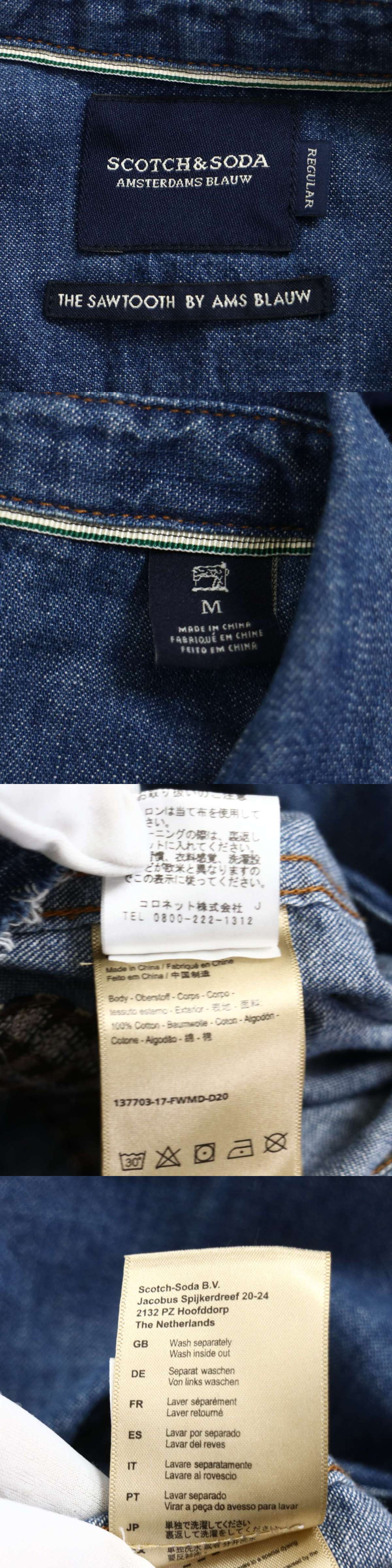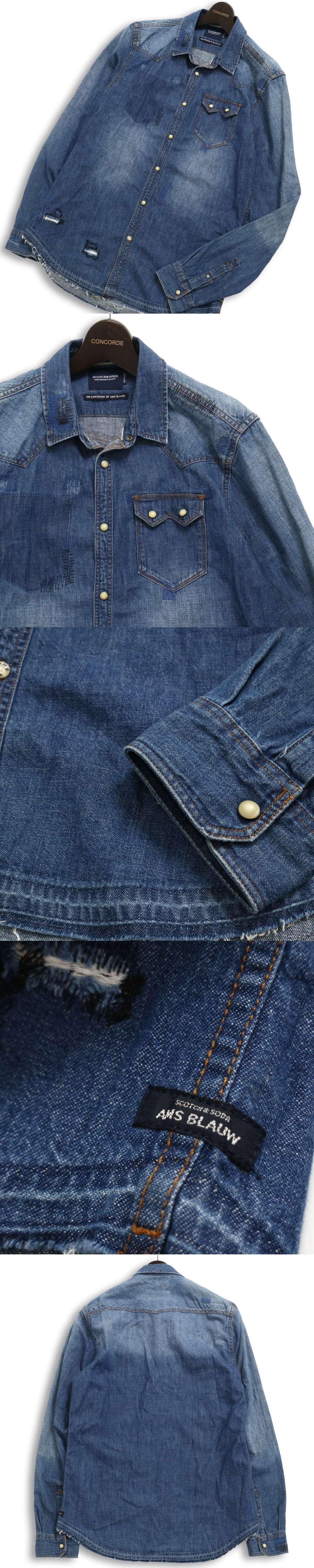 SCOTCH&SODA AMSTERDAMS BLAUW スコッチ&ソーダ 通年 ダメージ加工★ 長袖 ウエスタン デニム シャツ Sz.M メンズ