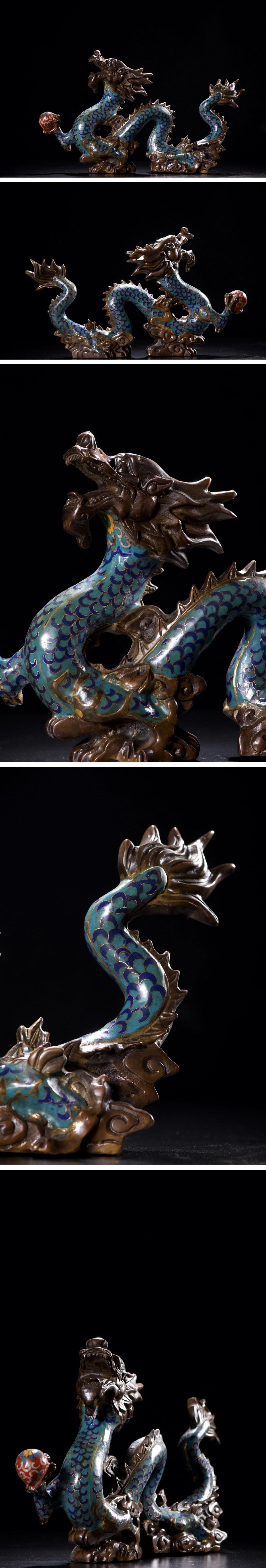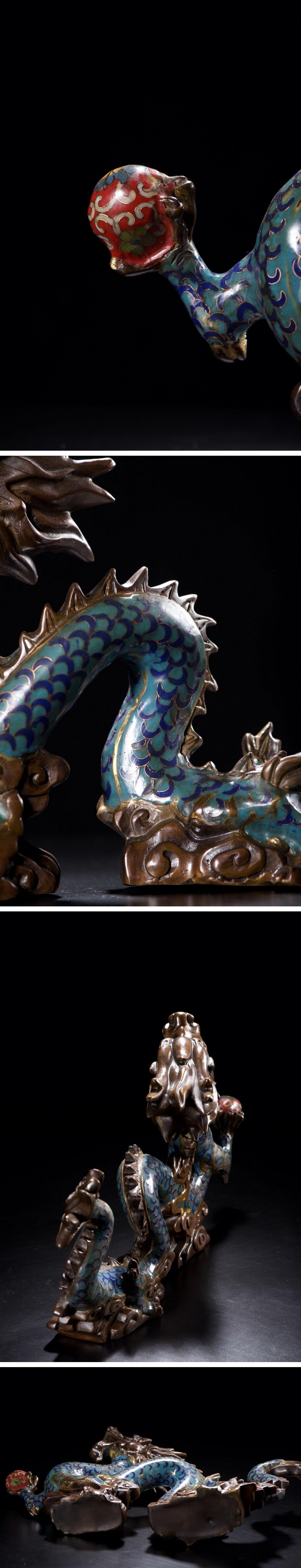 【清】関西某オークション購入 中国・清時代 銅胎七宝焼 巨大走龍案頭置物 極細工 古置物 古擺件 中国古美術7L10-EW4