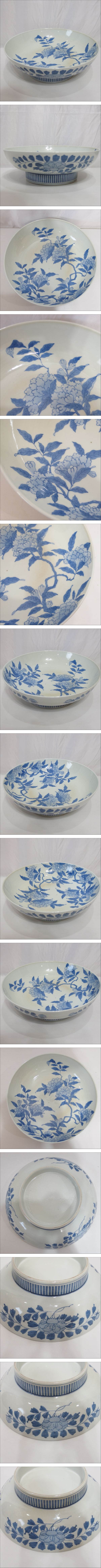 伊万里◆伊万里 染付 花文 大皿 大鉢 幅33.0㎝×奥行33.0㎝×高11.0㎝◆USED | |||